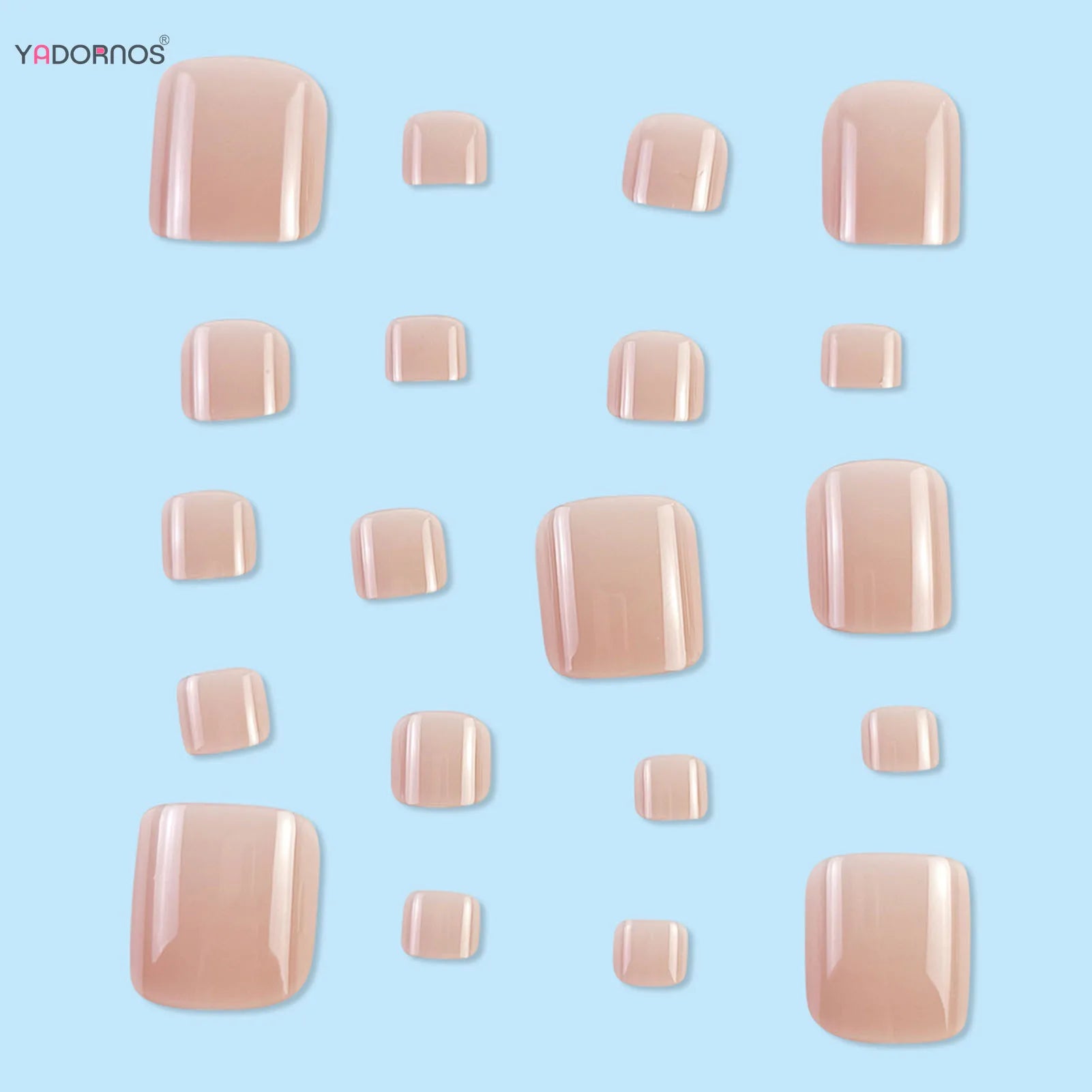 Nude Color Fake Toenails Women Summer Press on Toe Nails Elegant Solid Color False Nails Tips for Female Charms Manicure 24Pcs