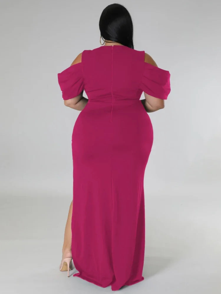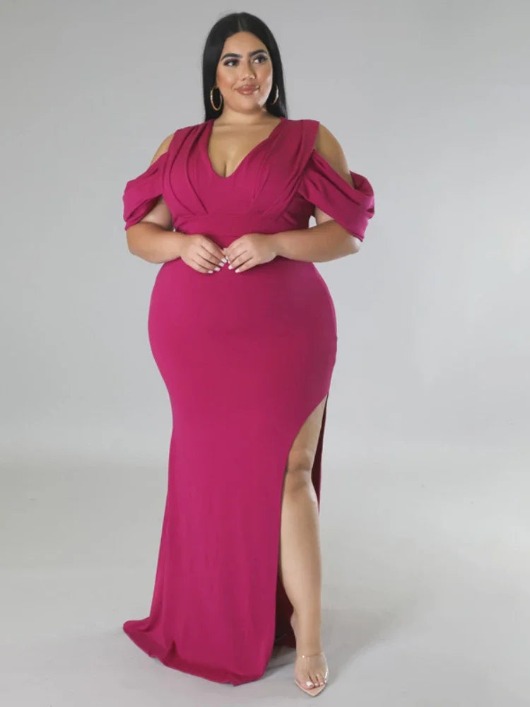 ONTINVA Long Prom Dresses V Neck Cold Shoulder Empire Curvy Lady Evening Birthday Wedding Event Party Gowns Plus Size 4XL 5XL