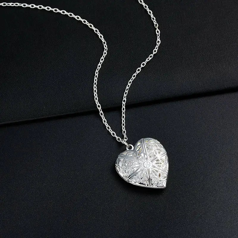 Openable Love Heart Locket Pendant Women Necklace Silver Color Chain Memory Photo Frame Family Lover Valentine Jewelry Gift New