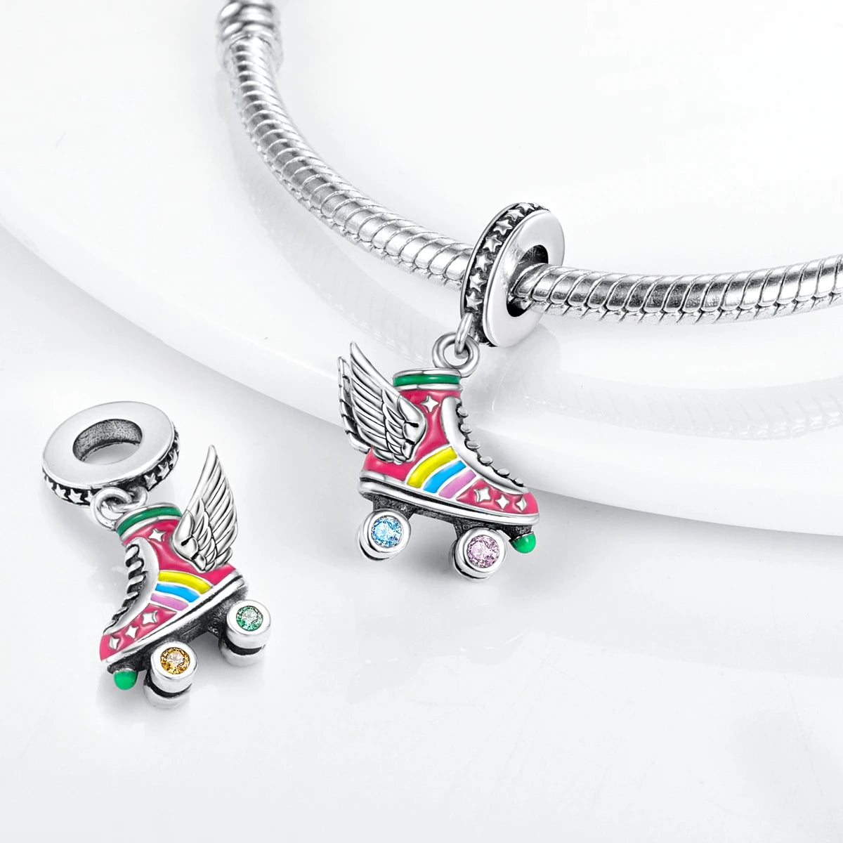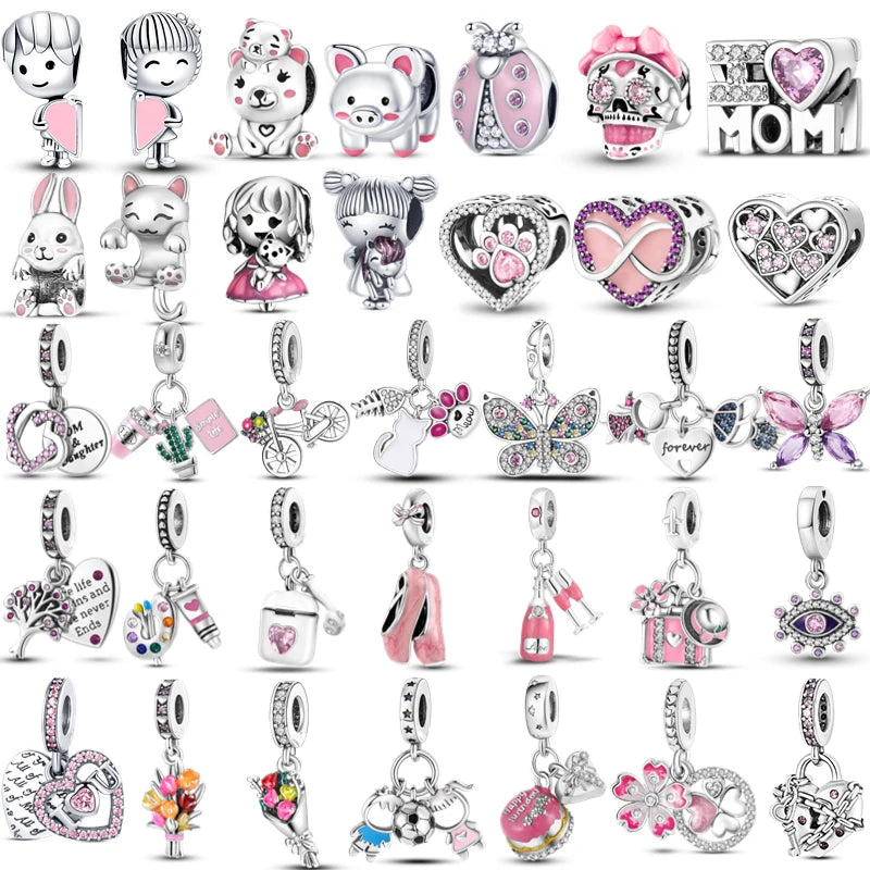 Pink Silver Plated Butterfly Flower Cat Girl Ballerina Shoe Charm Beads Fit Bracelet Necklace Pendant DIY Jewelry Making
