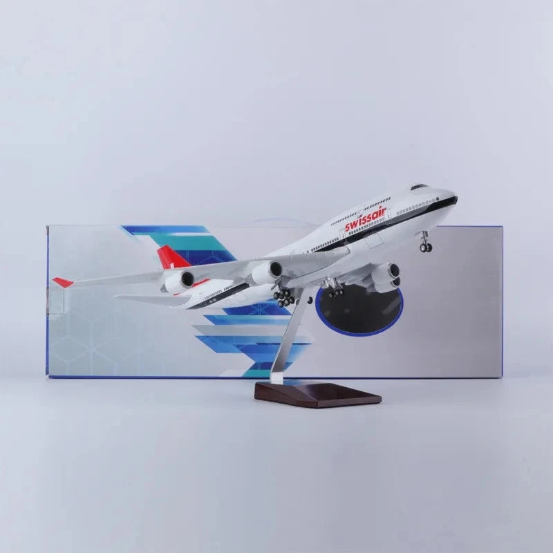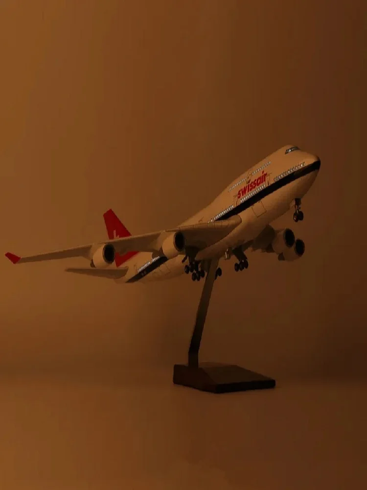 Plane Model Aircraft Scale 47cm 747 Airplane Model Switzerland Airways B747 Aircraft Model Die-cast Resin Plane Kids Toys For Boys