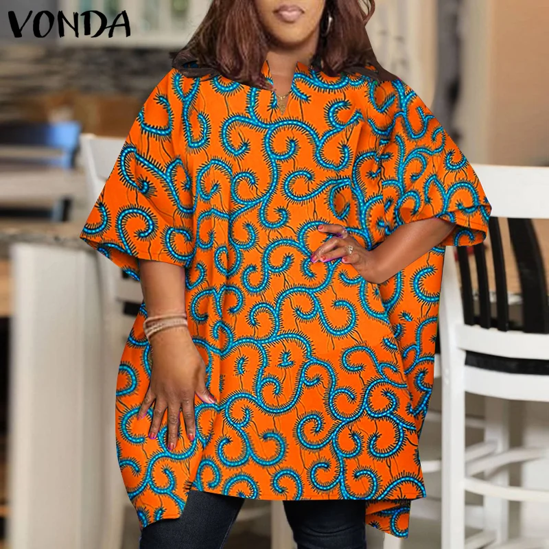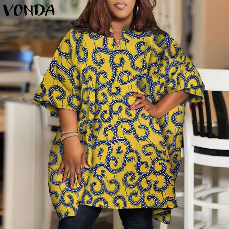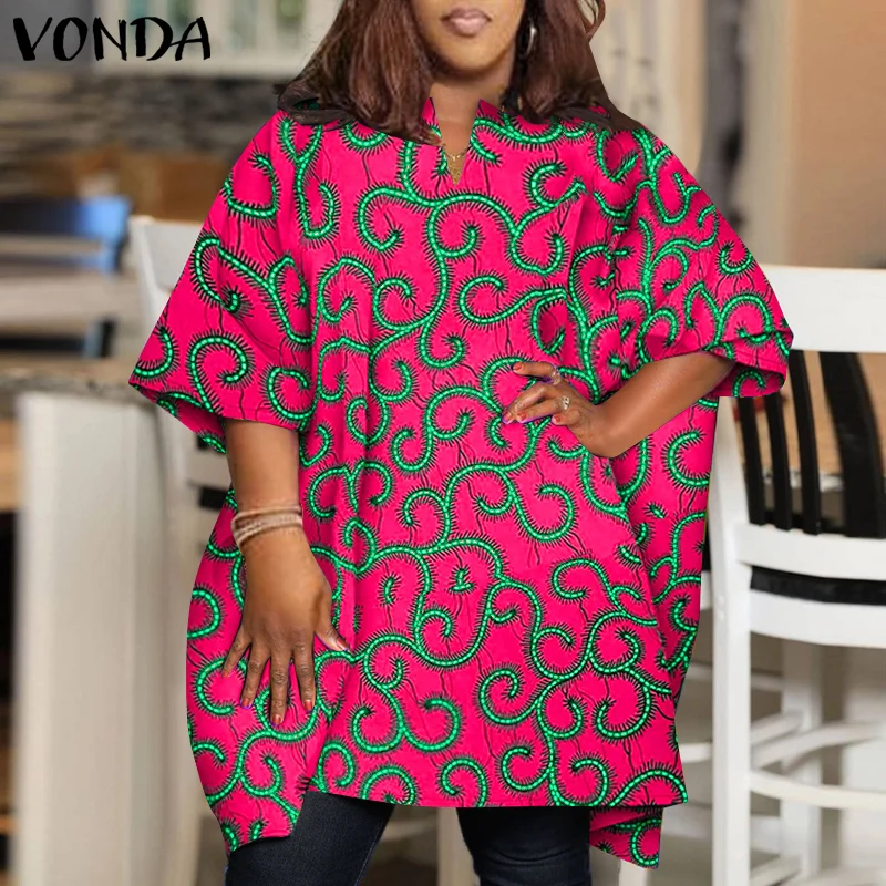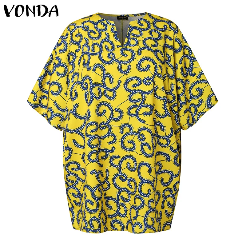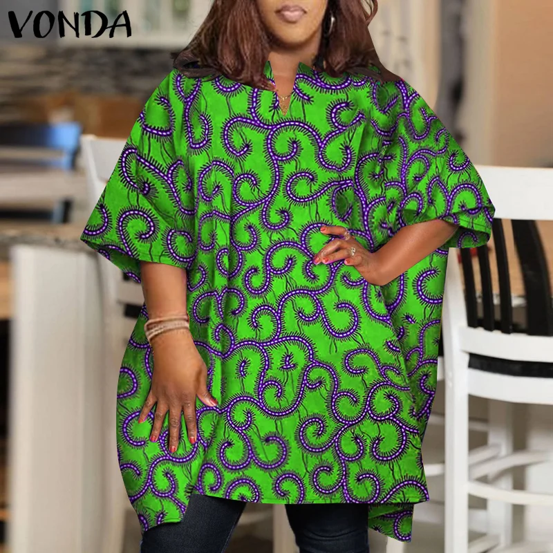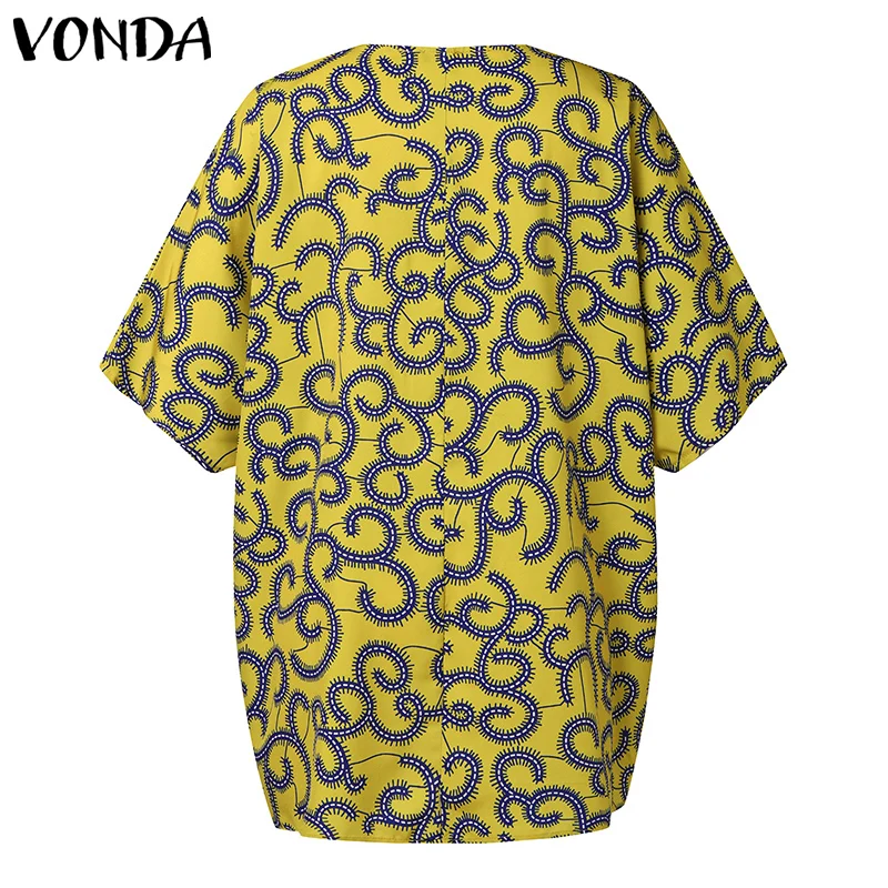 Plus Size 5XL VONDA Women Elegant Blouse 2024 Half Sleeve Printed Shirts Bohemian V Neck Tops Fashion Casual Loose Blusas