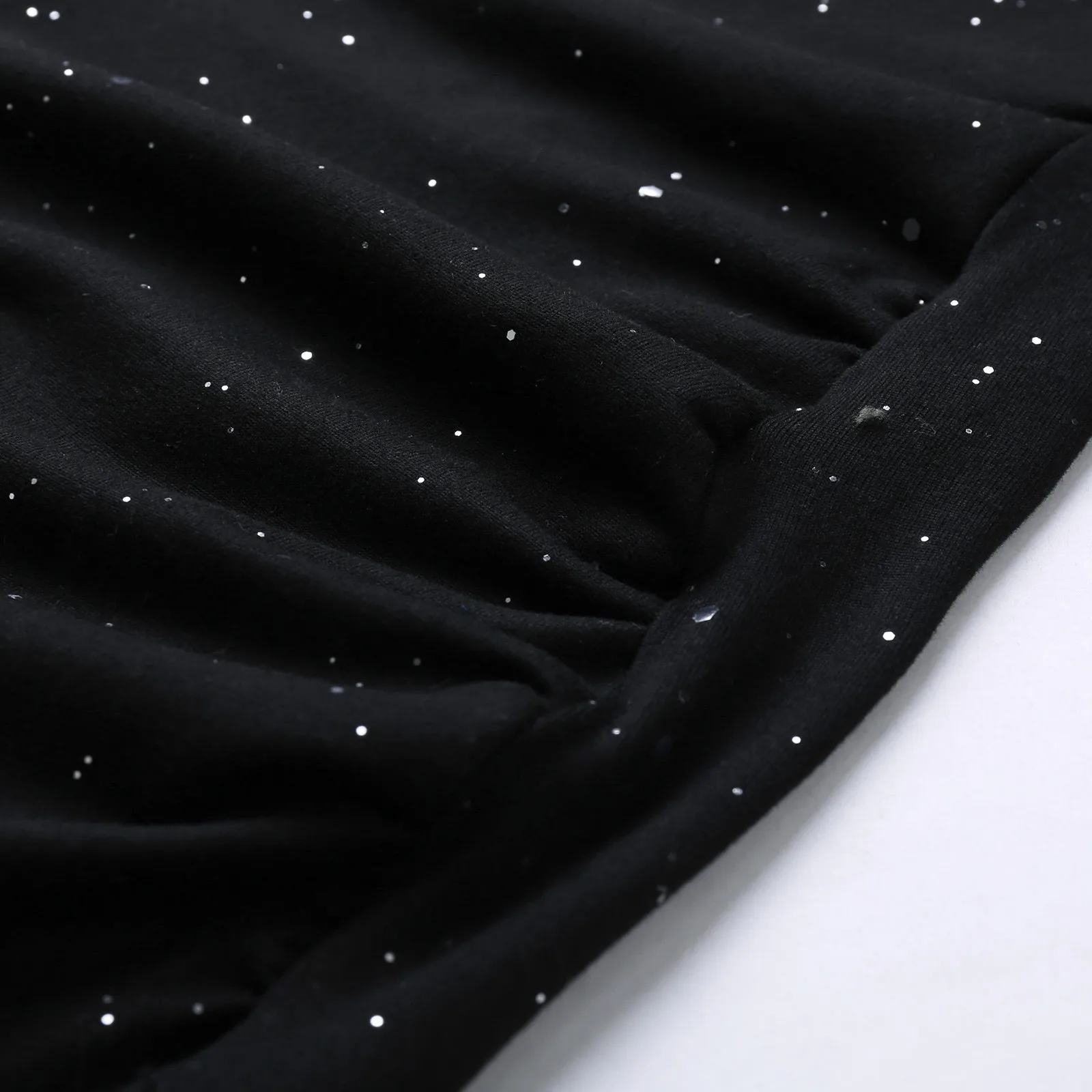 Plus Size Dresses For Curvy Women Long Sleeve V Neck Glitter Sparkly Sequin Cross Ruched Mini Dresses Evening Party Dresses