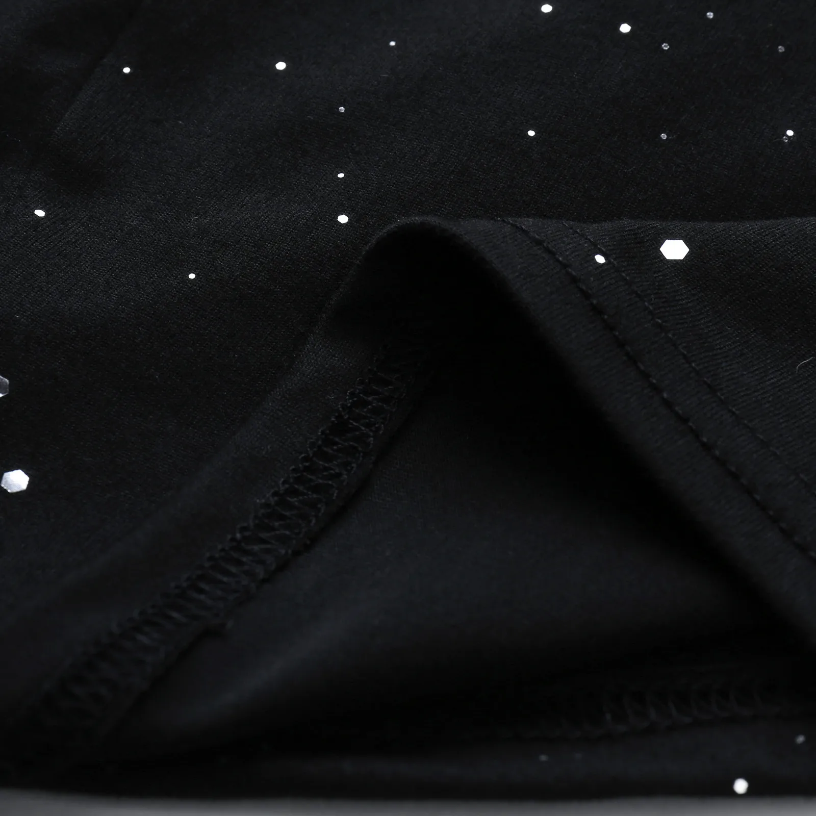 Women's Fashion Sequins Patch Deep V-Neck Long Sleeve Party Dress