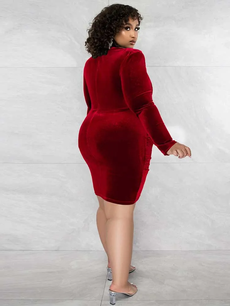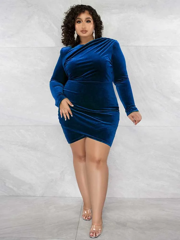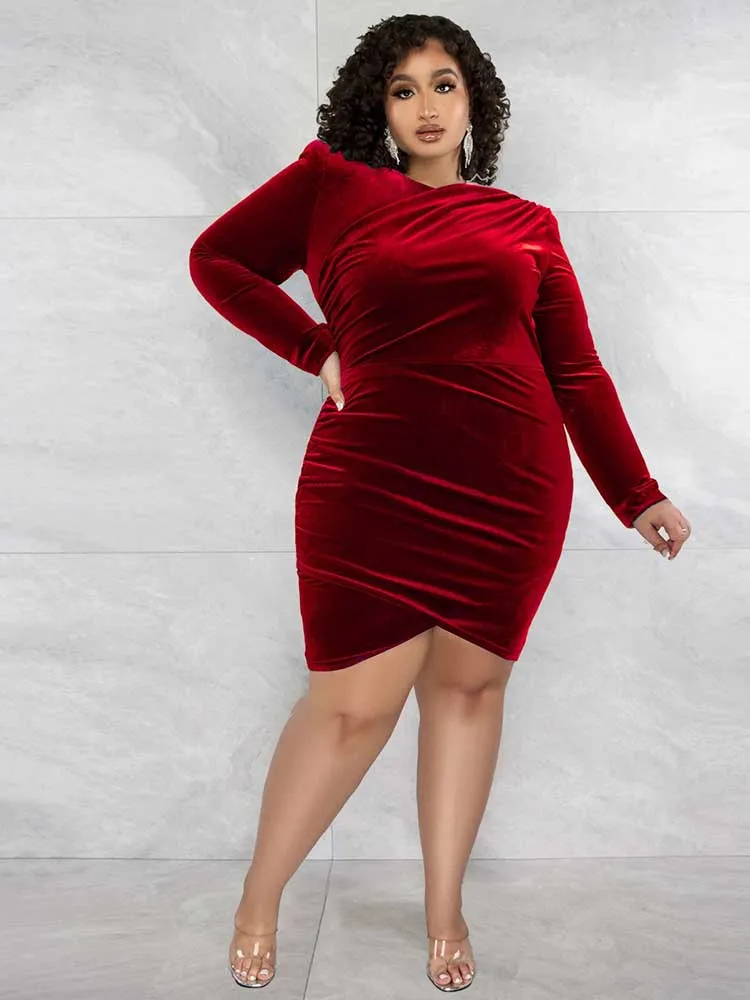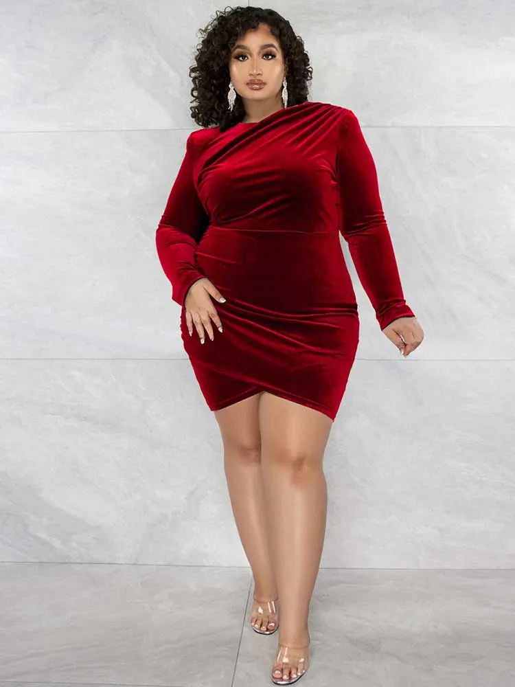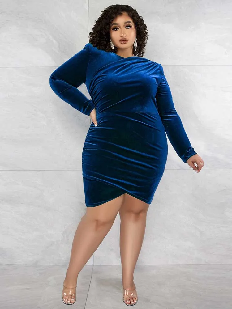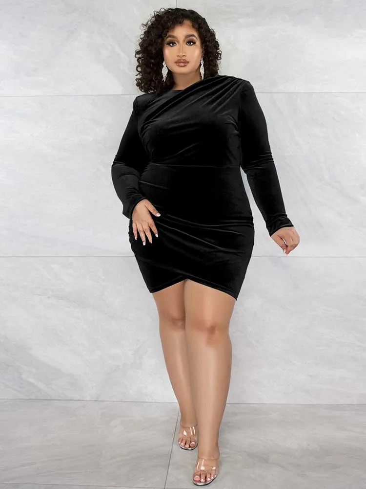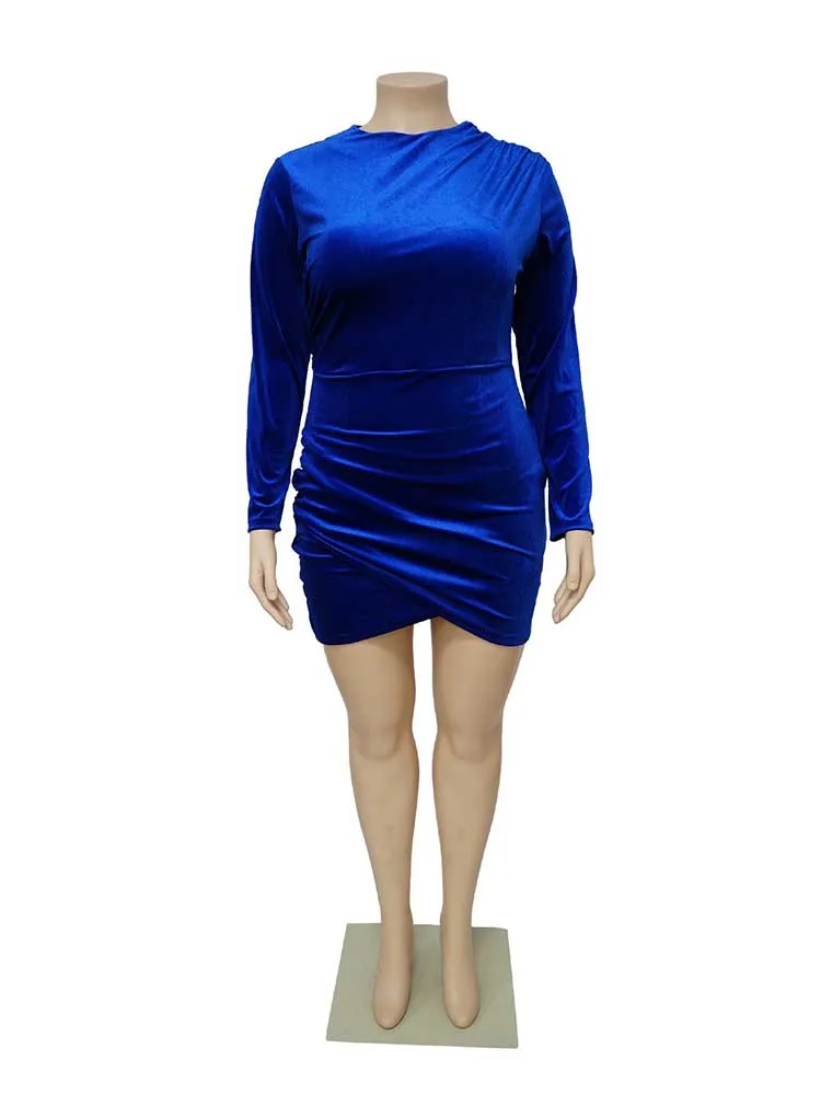 Plus Size Fashion Women Clothing Curvy Dresses Velvet Winter Party Dress Evening Low Back Draped Dresses Wholesale Dropshipping