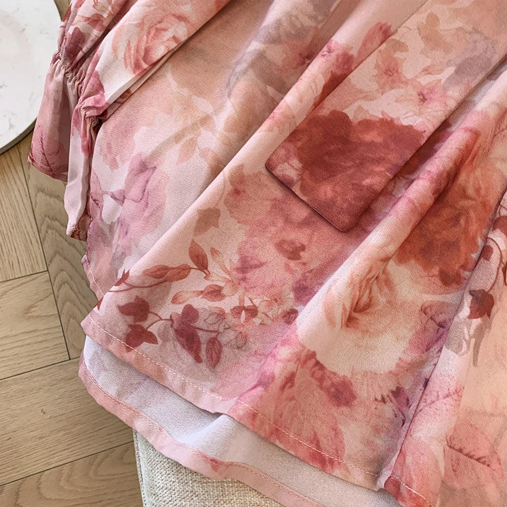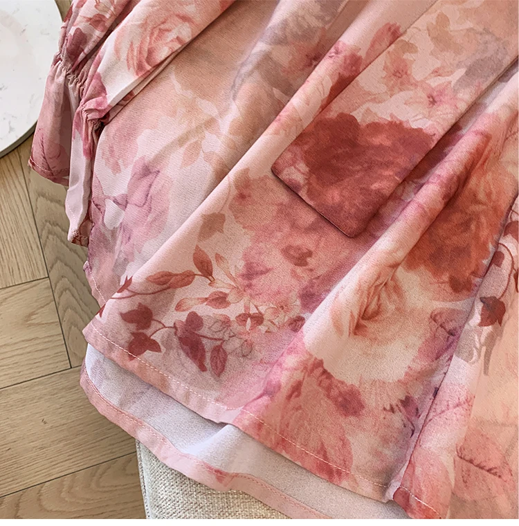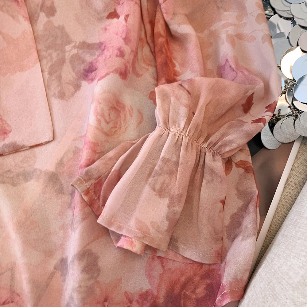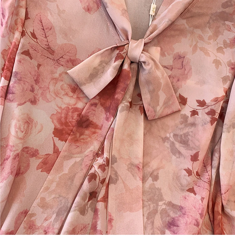 Plus-size Women's Fall Casual Commute Loose and Comfortable shirt Chiffon print long sleeve bow collar lace-up top large 2024