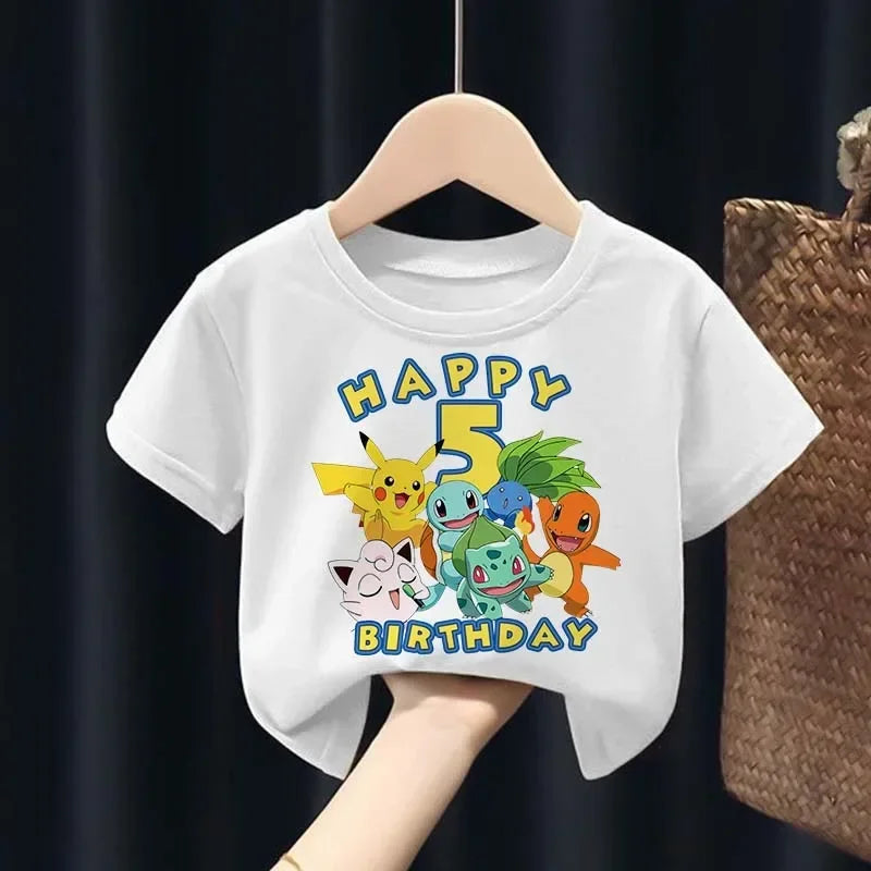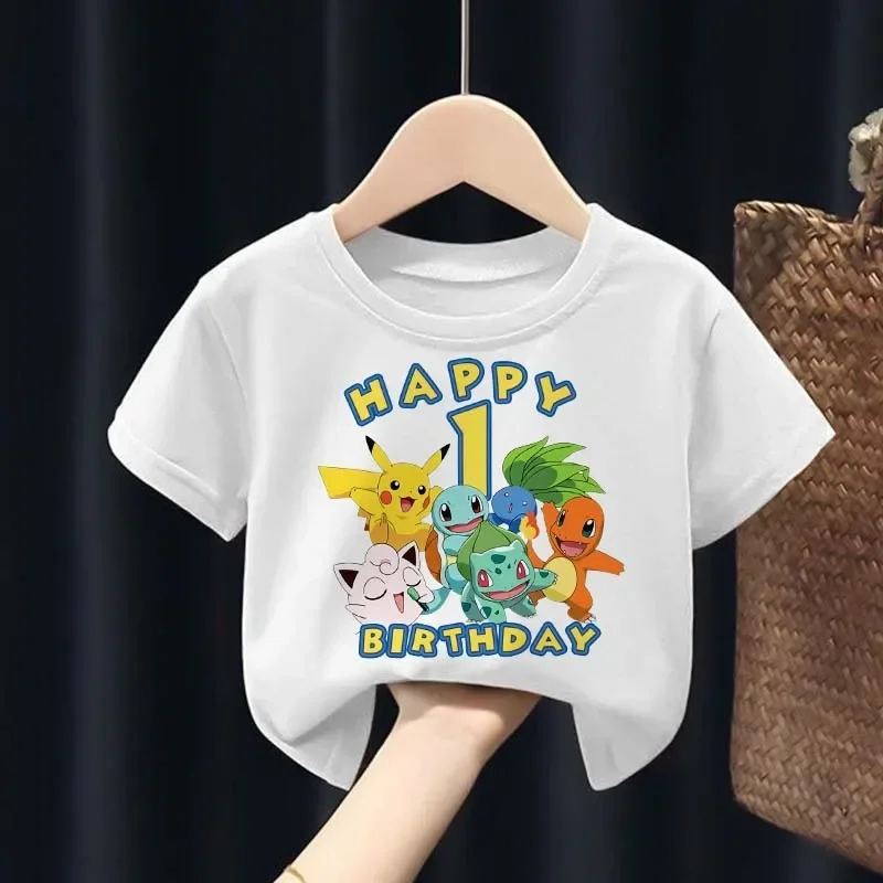Pokemon Children T-shirt Anime Cartoon Pikachu Charmander Jigglypuff Printed Top Spring Summer Loose Comfortable Casual Clothes