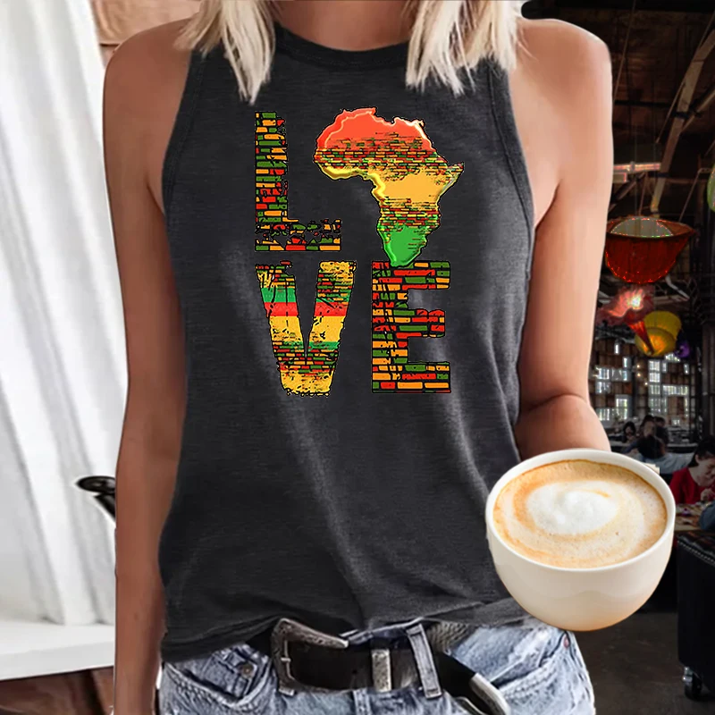 Print Women's Letters Love Casual Crew Neck Versatile Summer Sleeveless shirt Clothing Tops Girl Liberation Day Tanks Tops S-80