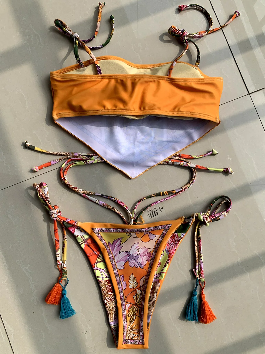 Printed Crop Top Bikini Women Bandeau Bikinis 2025 Swimwear Female Swimsuit Two-pieces Bikini Set Bathing Suit Swim Beach Wear