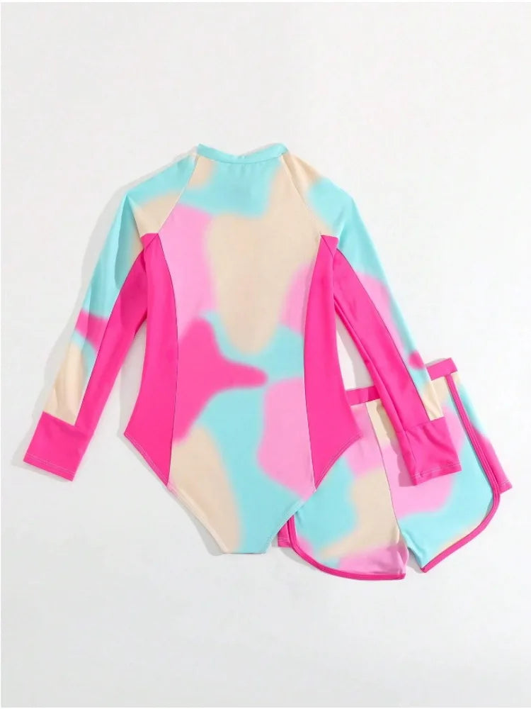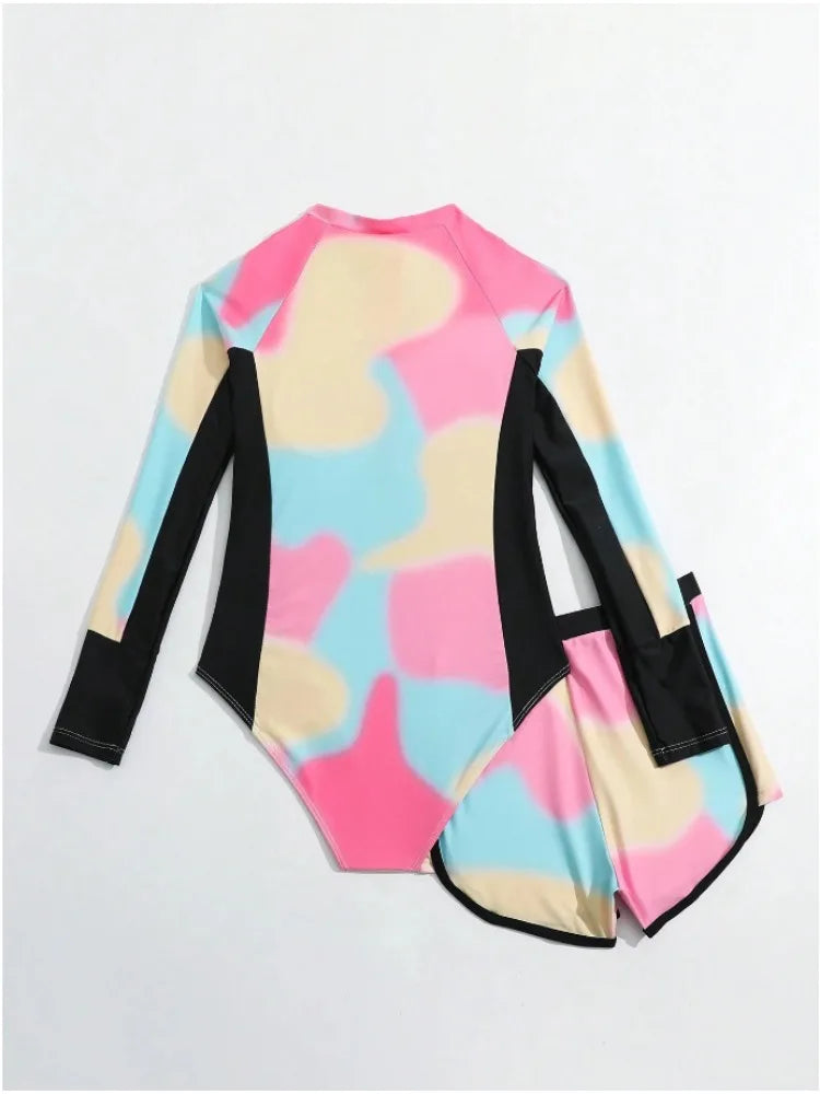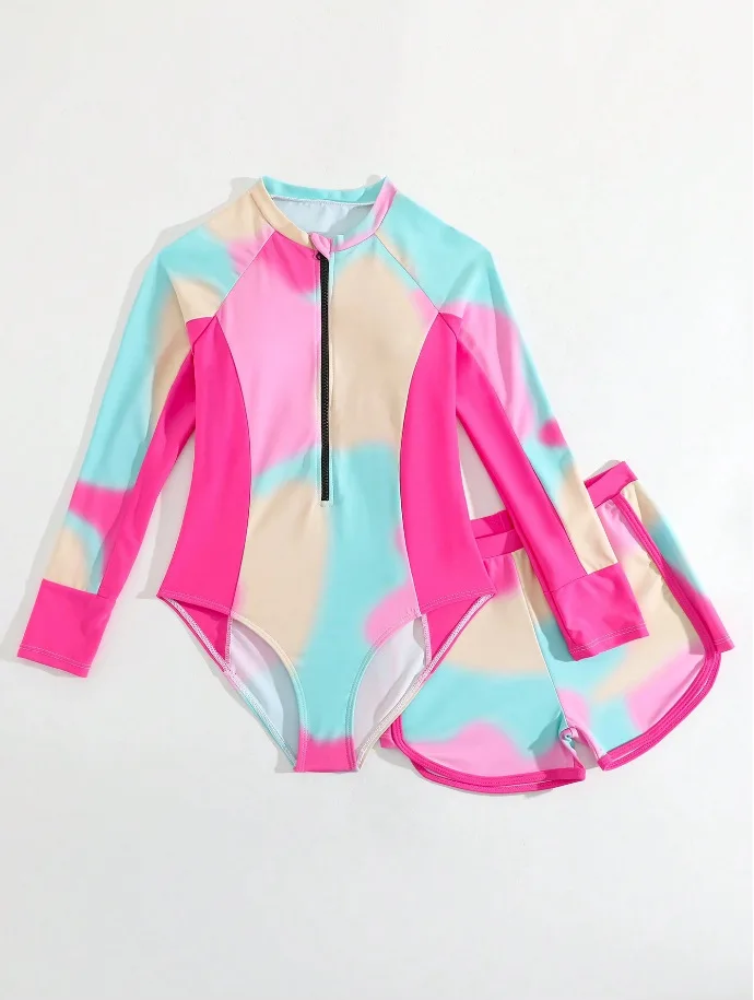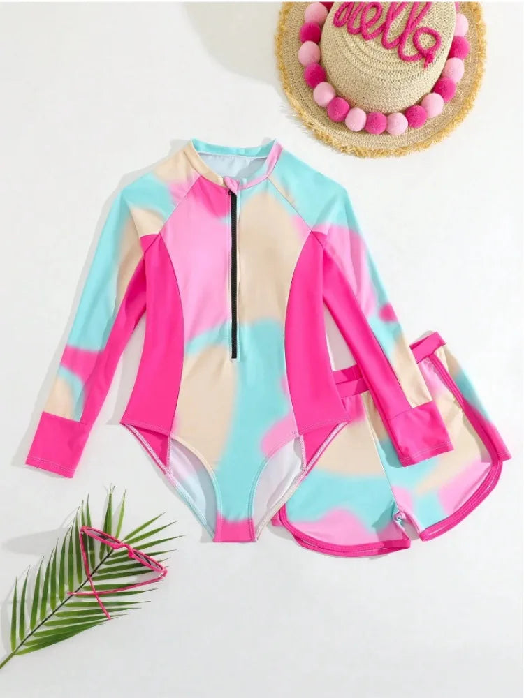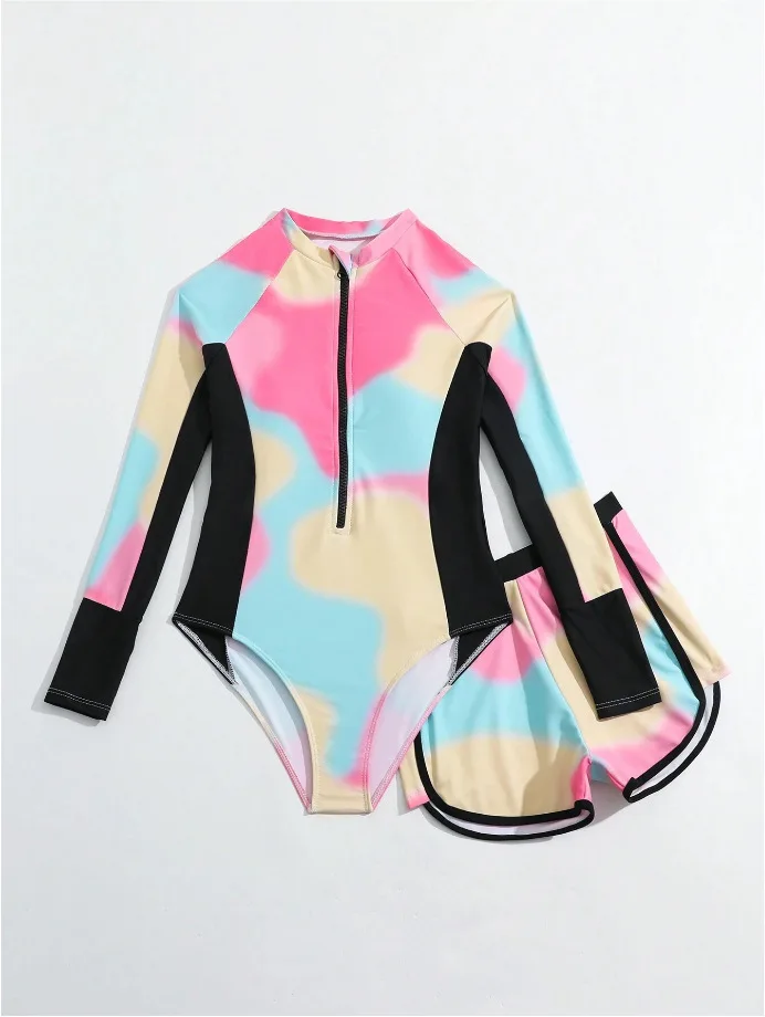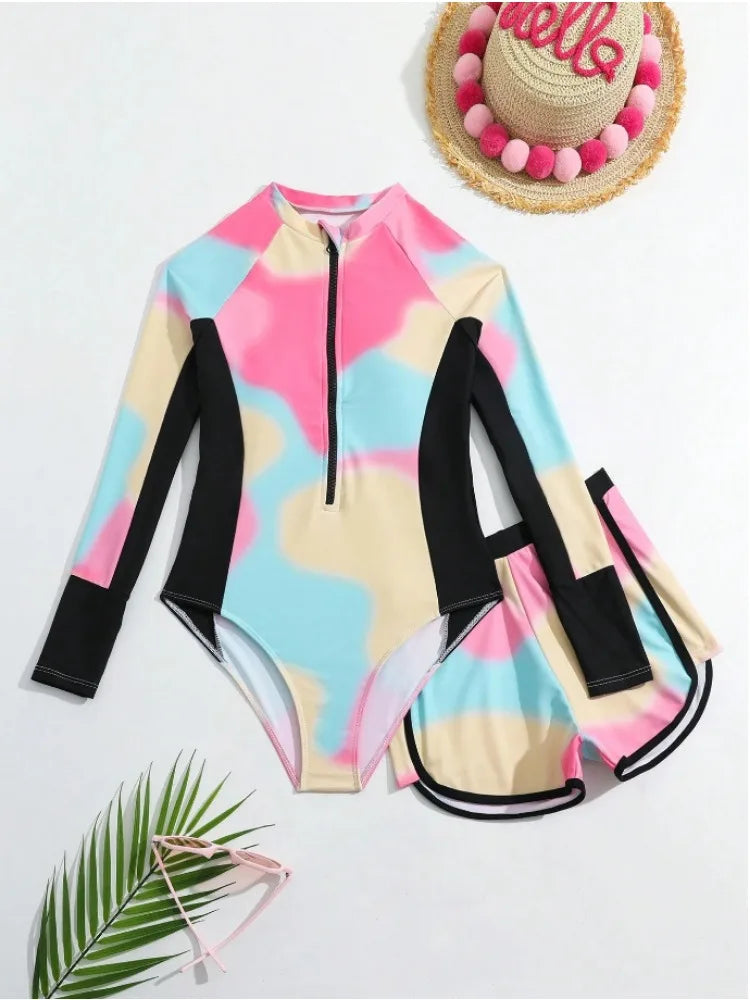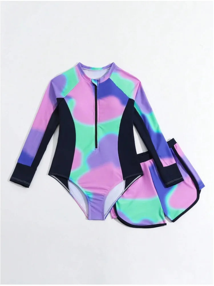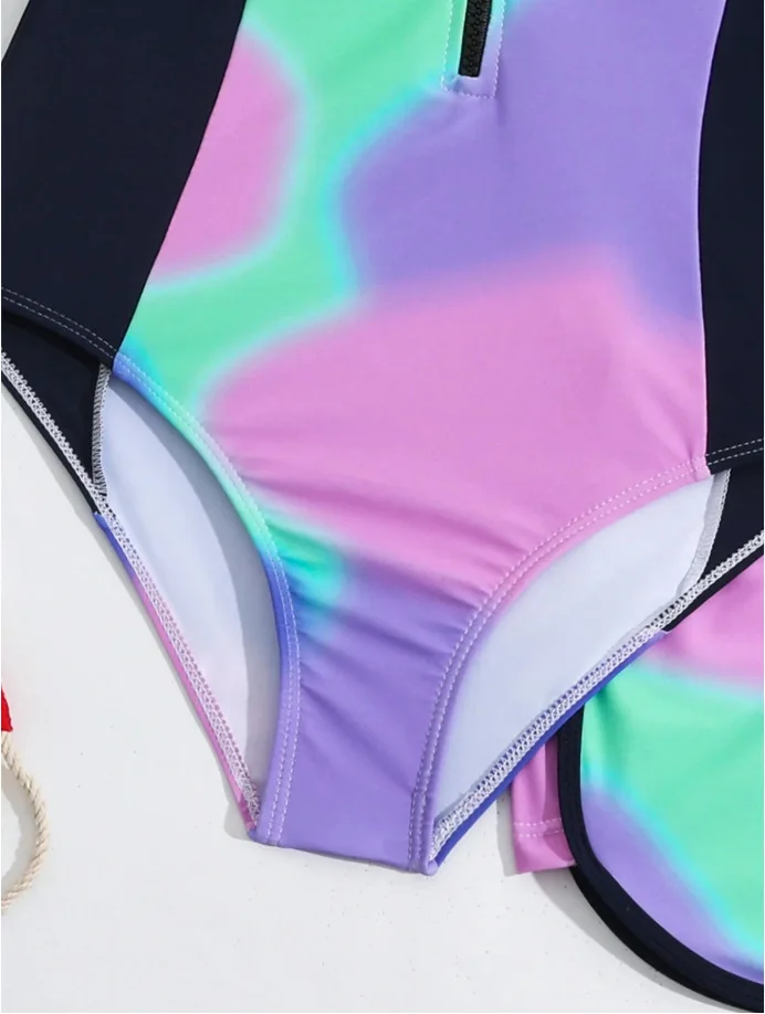 Purple Girls One Piece Swimsuit 8-12 Year Kids Swim Suit Teenage Children's Swimwear 2025 Sunscreen Beach Bathing Suits Shorts