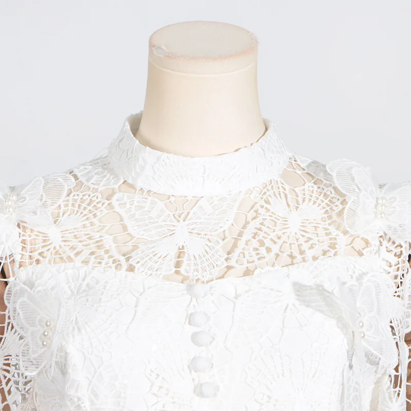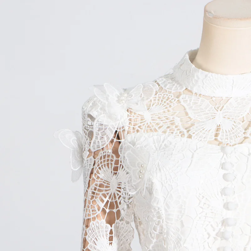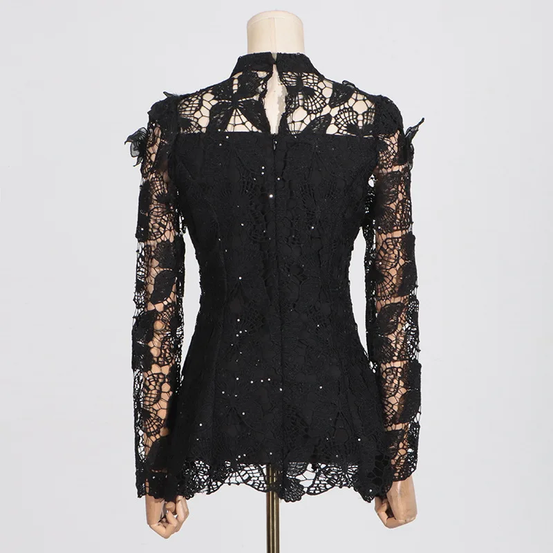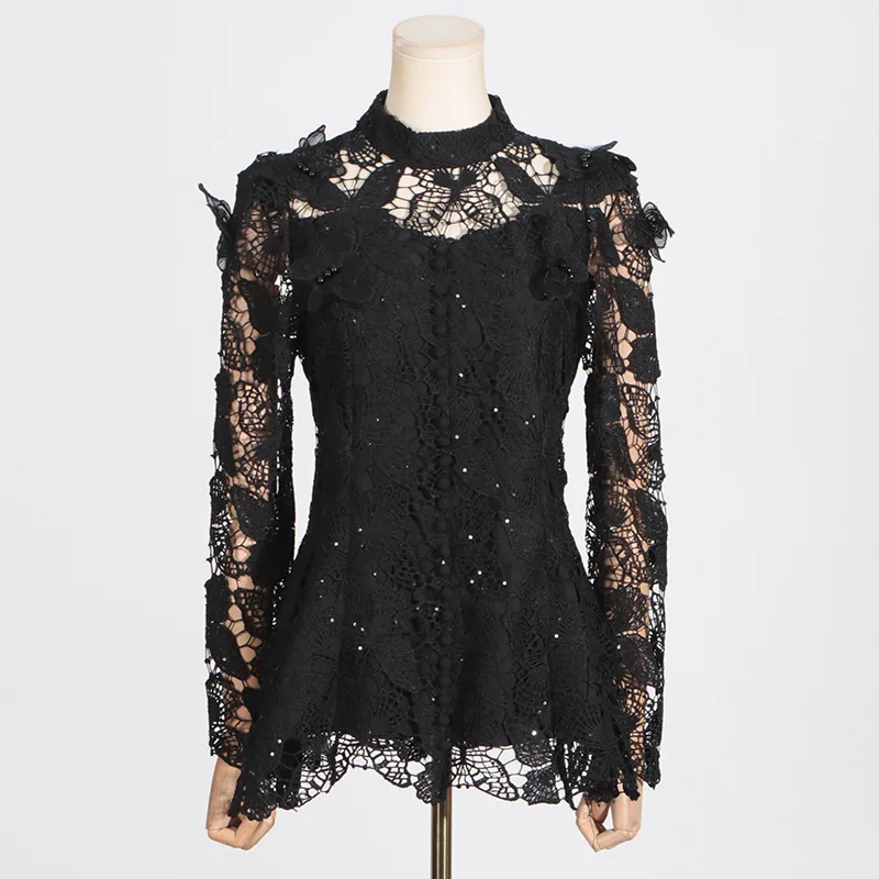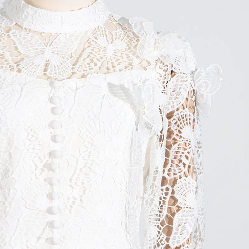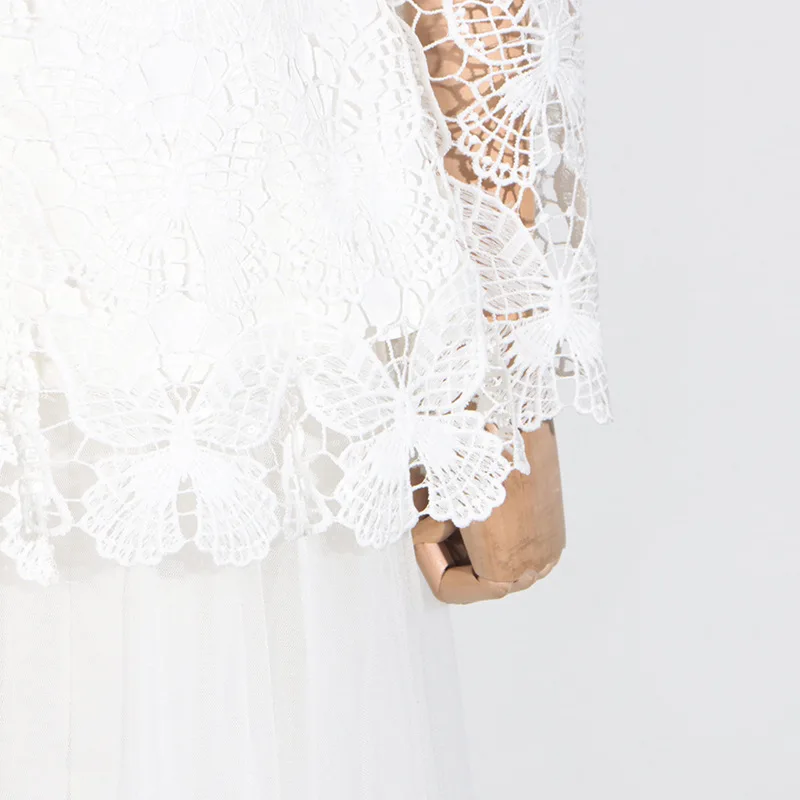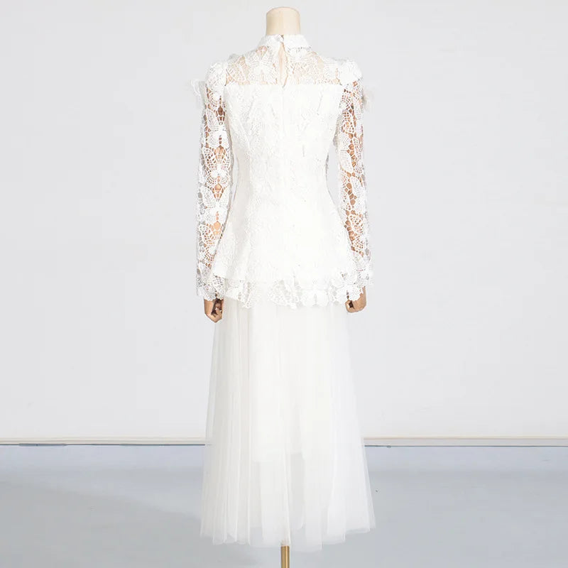 QMQA Fashion Women's Elegant 2 Piece Set Embroidery Long Sleeve Top High Waist Mesh Skirt Sets 2025 Spring Female New QM78
