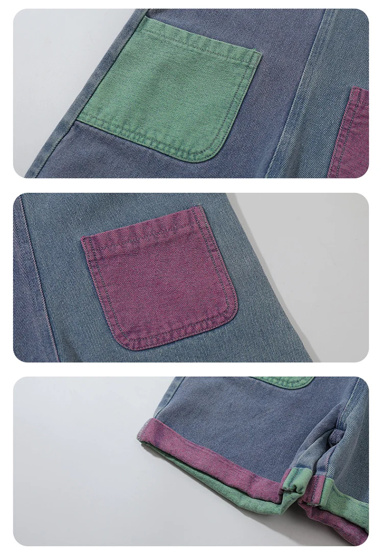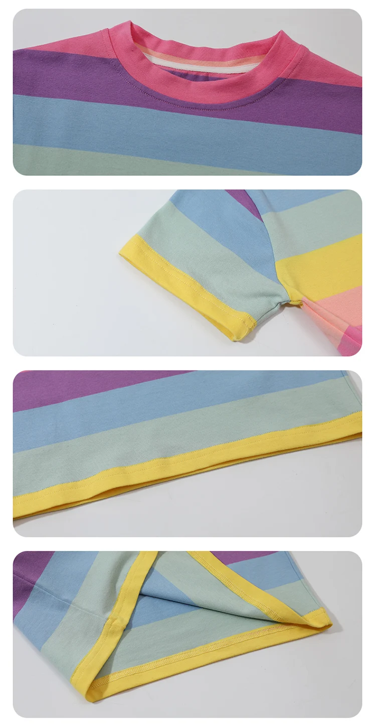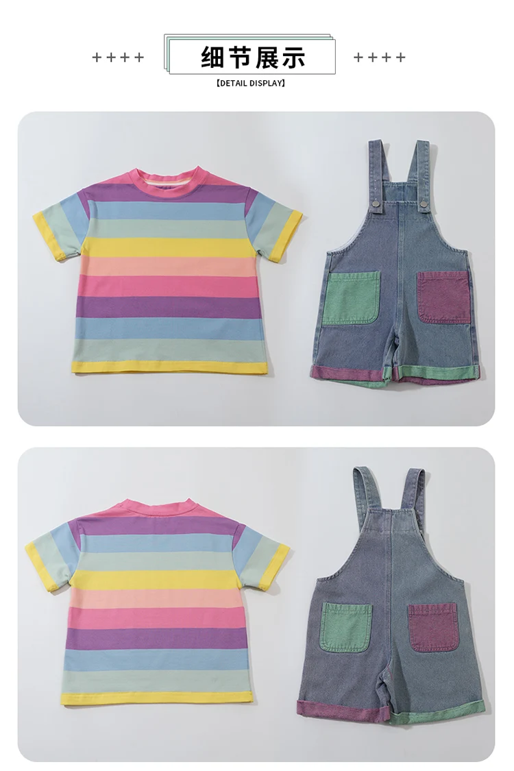 Rainbow T-Shirt Summer Bib Pants Baby Girls Shorts Jumpsuit Boy Cute Colorful Striped Short Sleeve Tops+Denim Short overalls Set