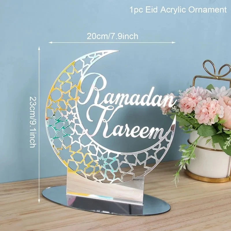 Ramadan Tray Table Centerpieces Plate Acrylic Ramadans Eid Mubarak Decorations for Home 2024 Islam Muslim Festival Party Gifts