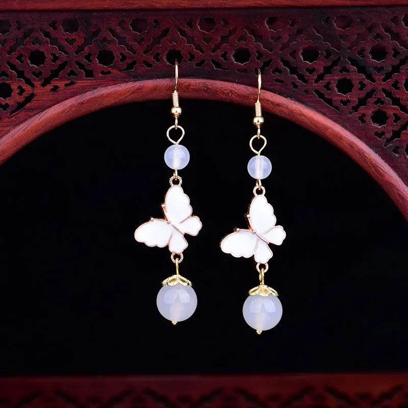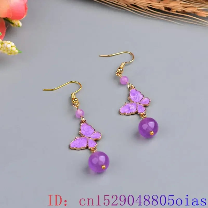 Real Jade Butterfly Earrings Fashion 925 Silver Vintage Stone Energy Luxury Bead Women Gifts Talismans Carved Natural Jewelry