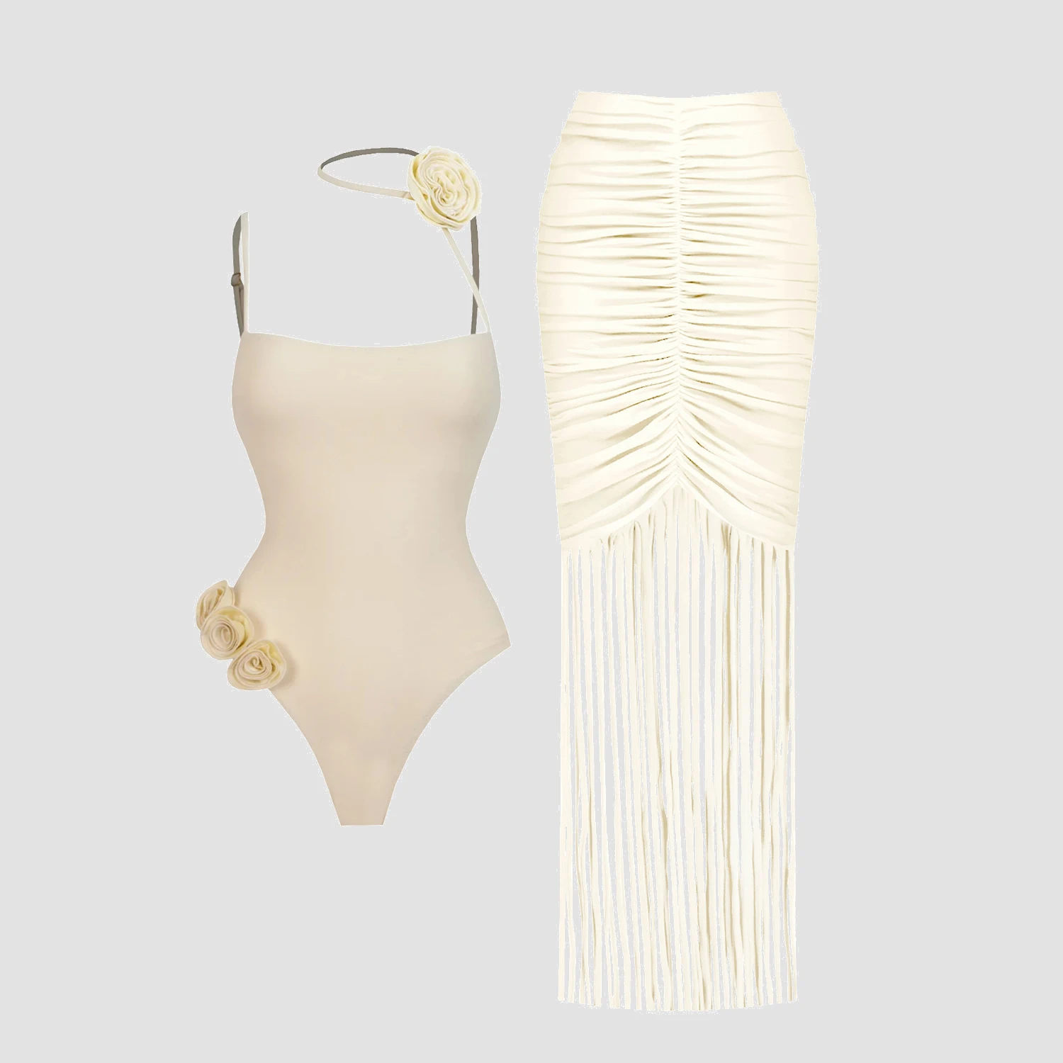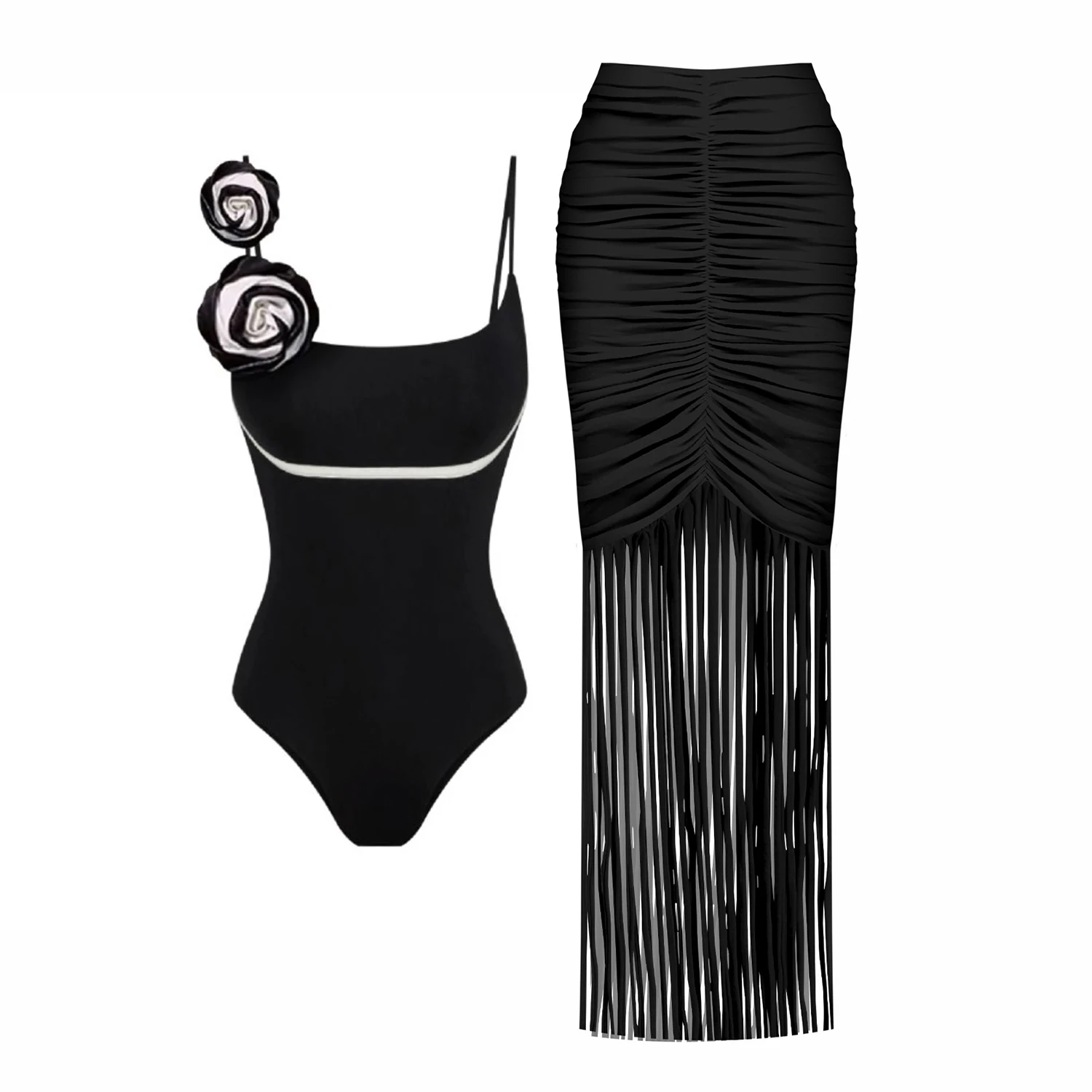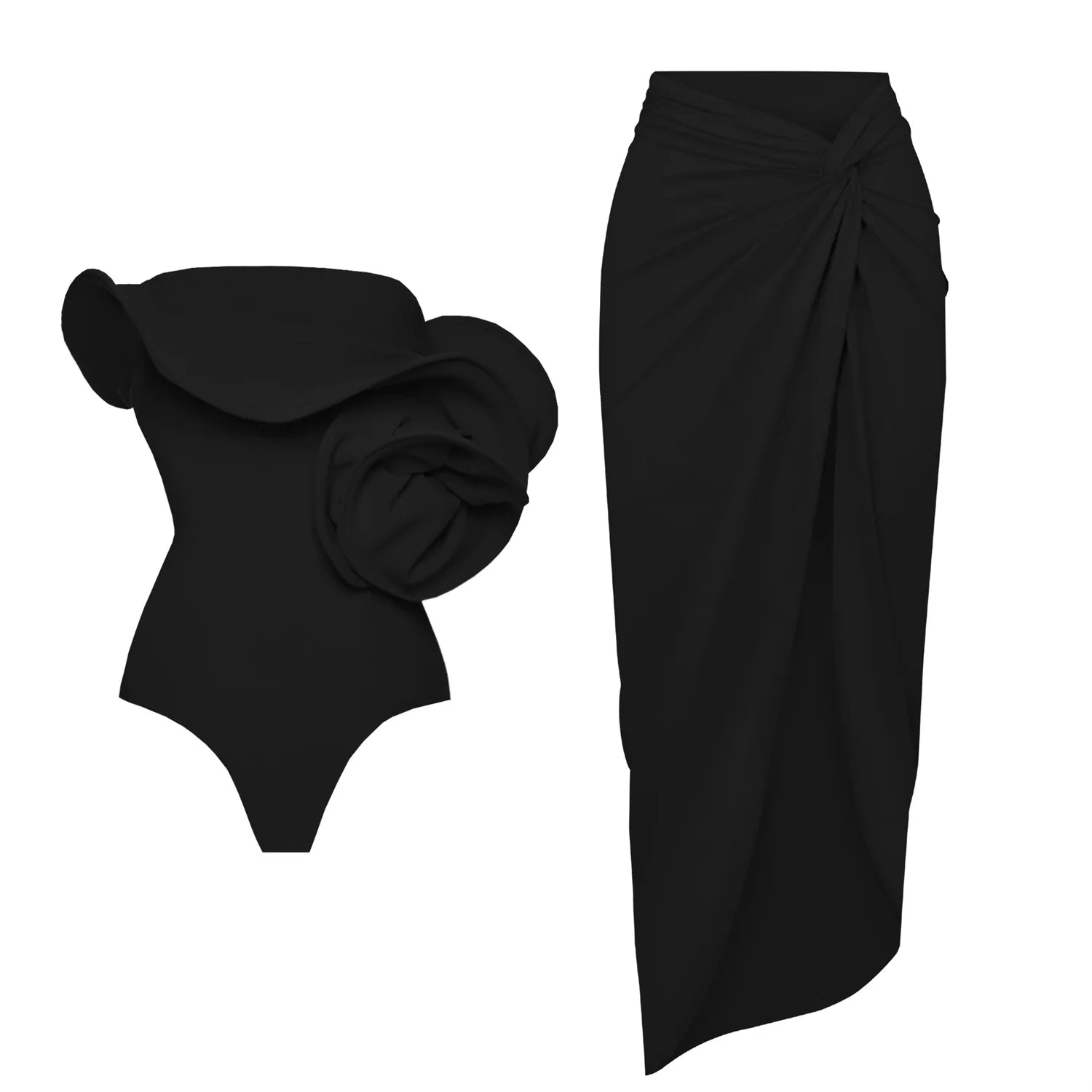 Red Flower Swimsuit With Cover Up Luxury Woman Swimwear Off Shoulder Swim Suits Female Sliming Bodysuit Chic Beachwear