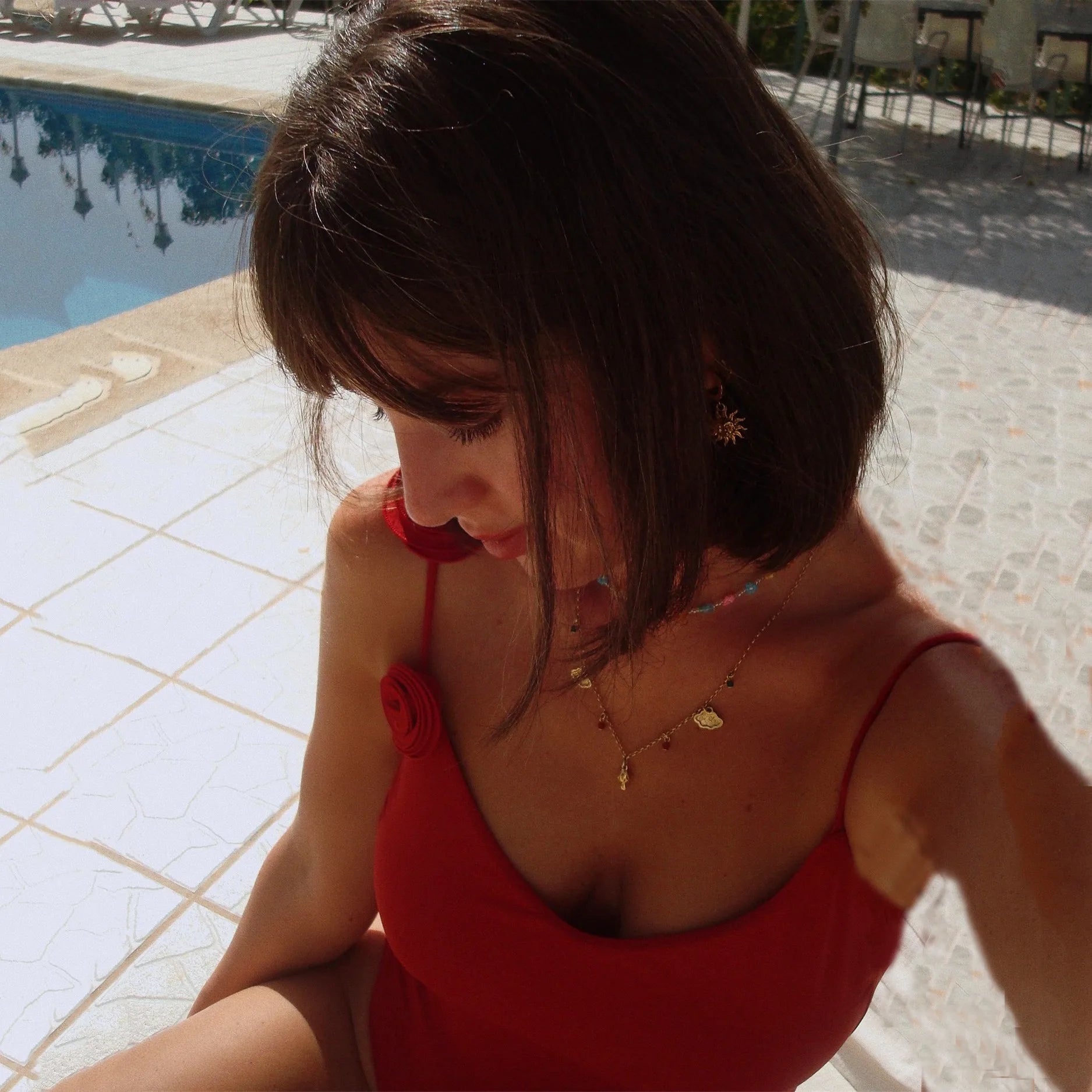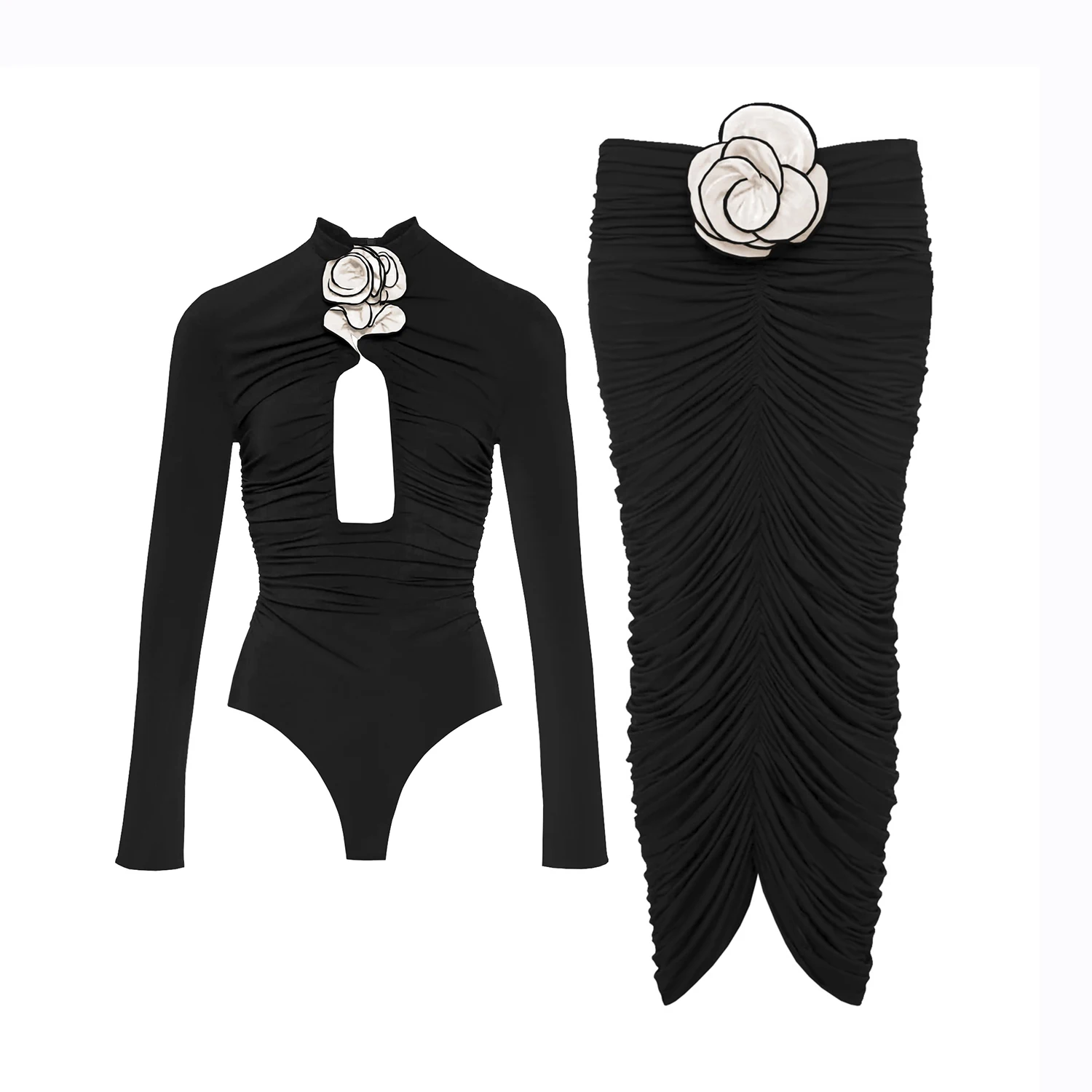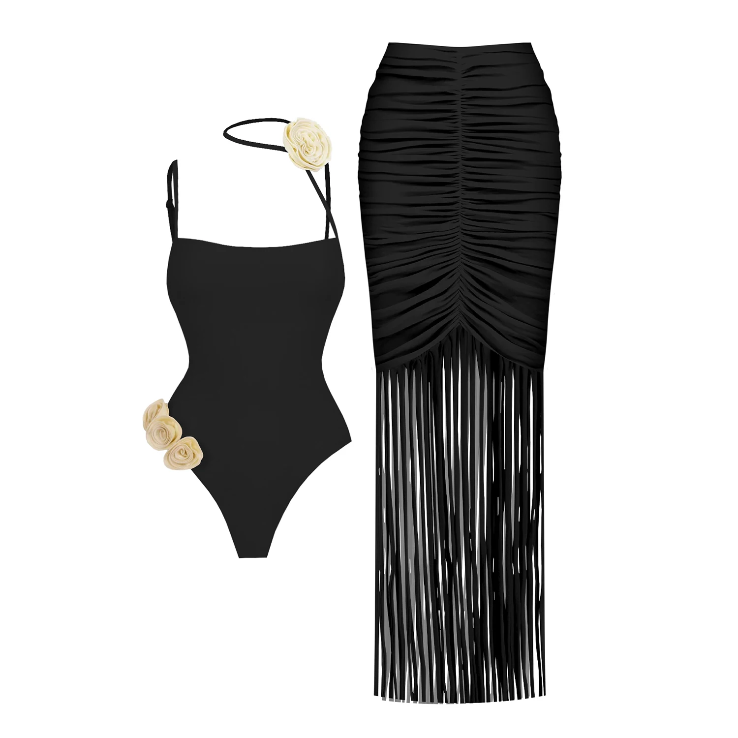 Red Flower Swimsuit With Cover Up Luxury Woman Swimwear Off Shoulder Swim Suits Female Sliming Bodysuit Chic Beachwear
