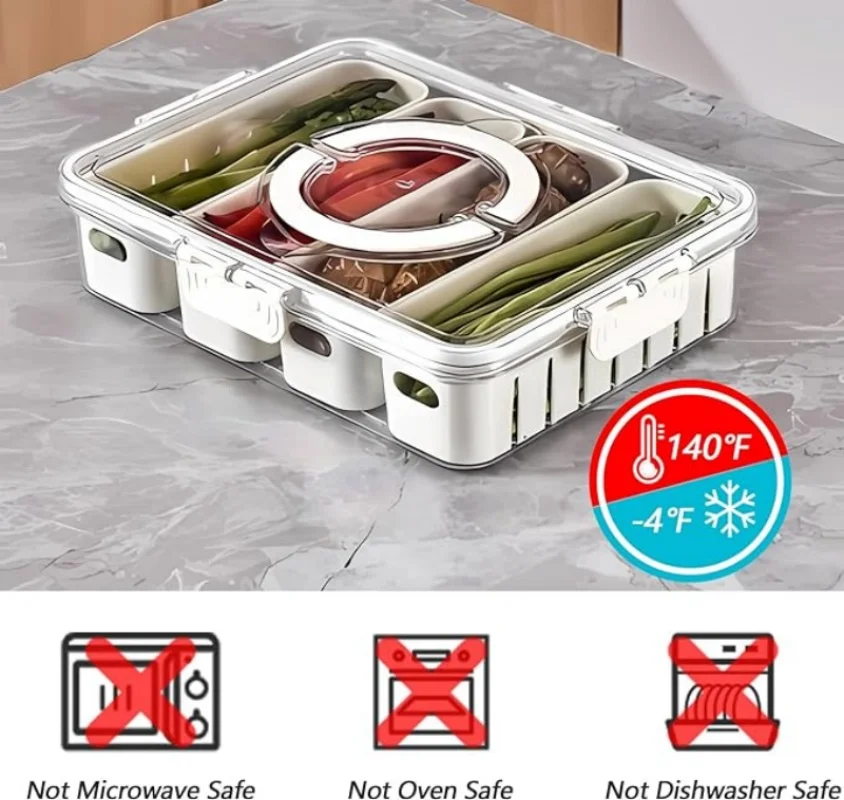 【𝐂𝐥𝐚𝐬𝐬𝐢𝐟𝐢𝐞𝐝 𝐬𝐭𝐨𝐫𝐚𝐠𝐞】: 4-cell storage and organization, food stacking and storage in one step, covered storage, bid farewell to disorder. Can be stored in the refrigerator to keep food fresh and neatly arranged. It can hold snacks, seasonings, dried fruits, appetizers, nuts, toppings, and anything else you like.