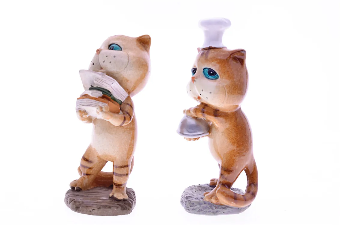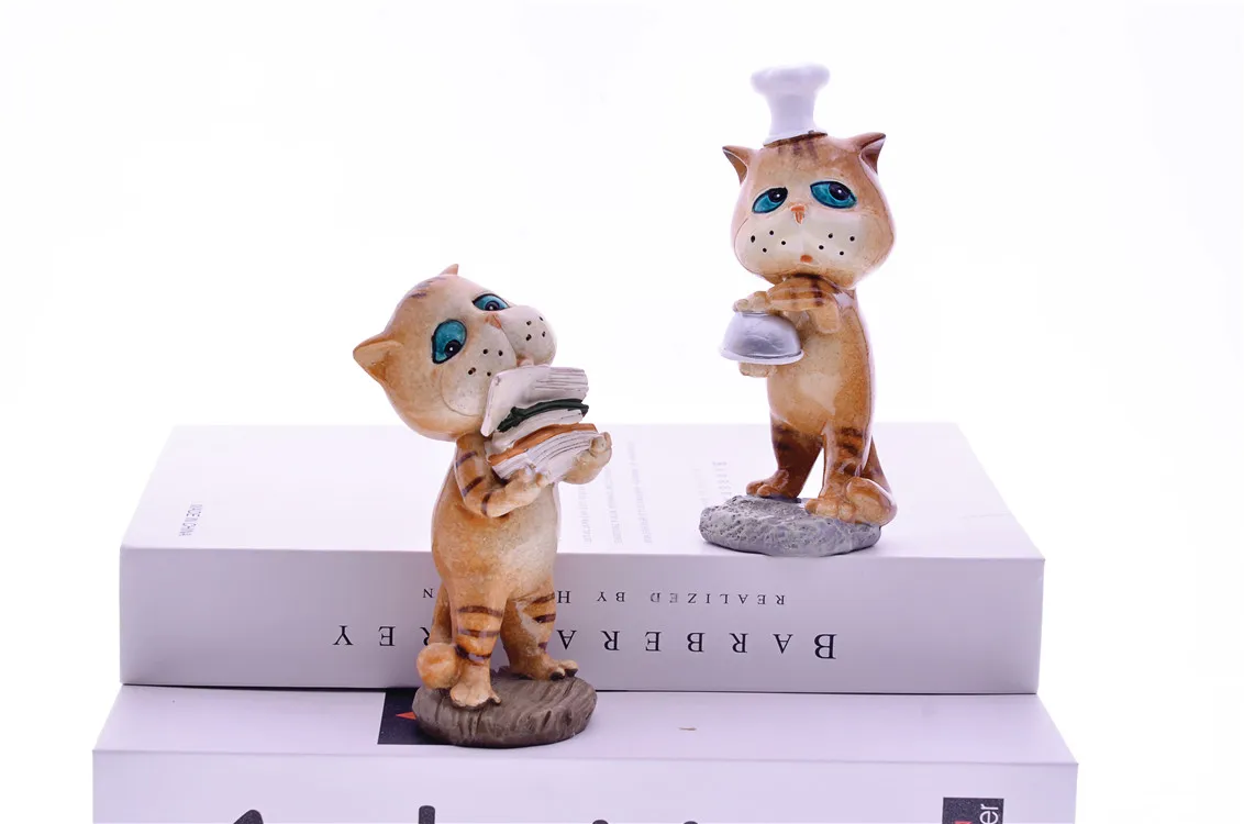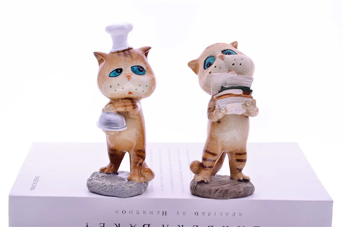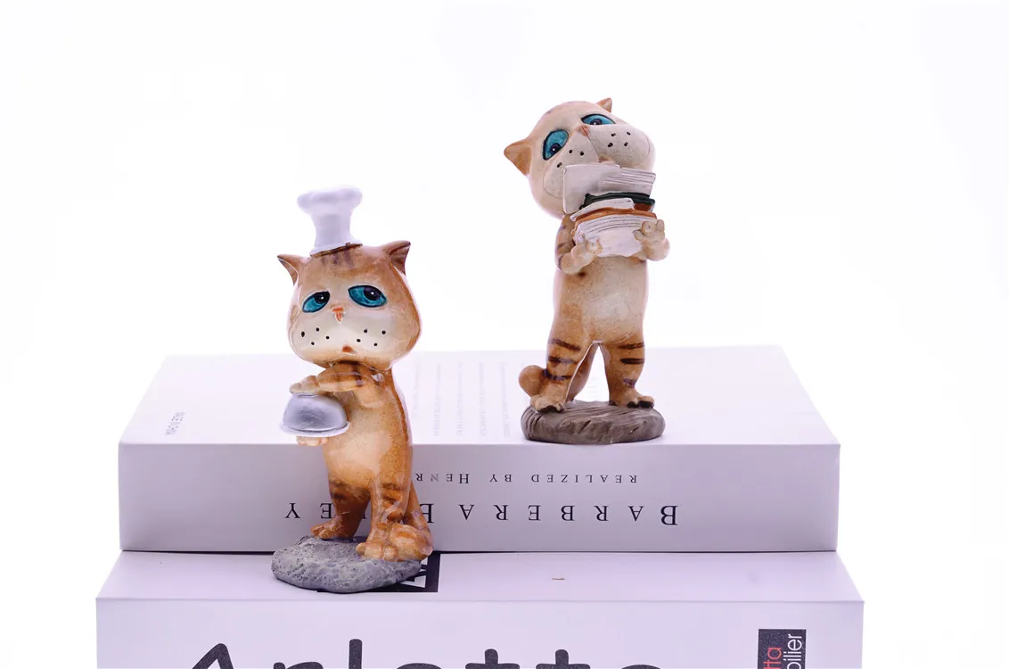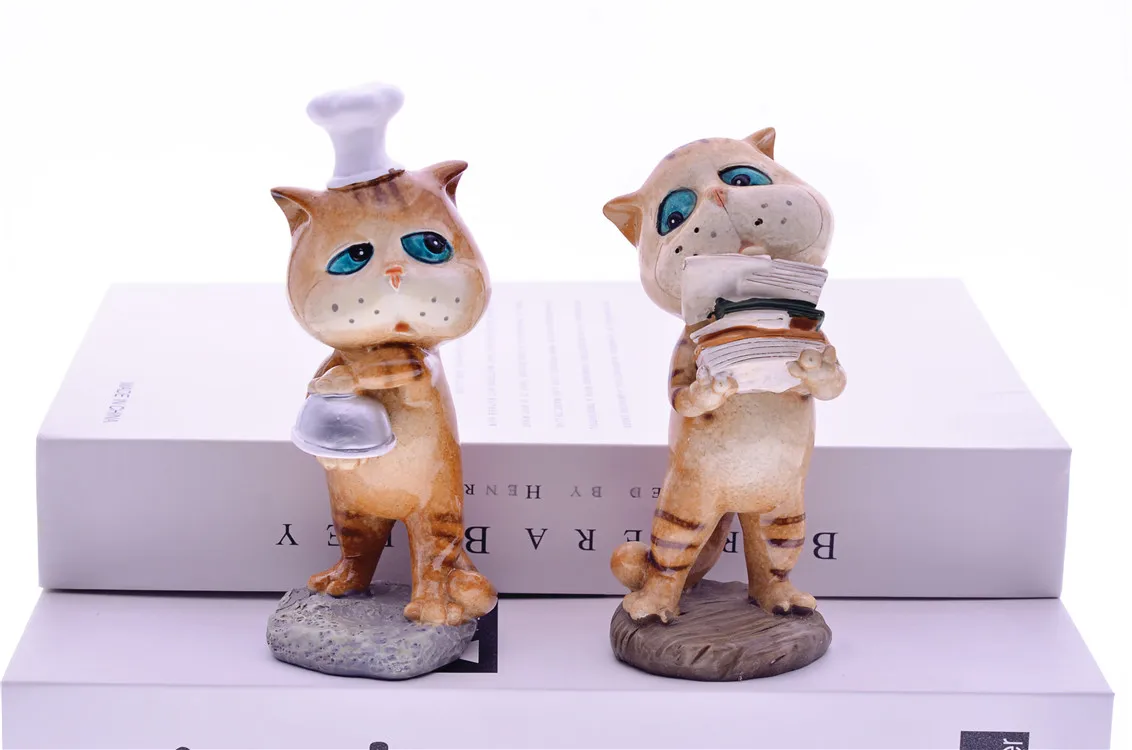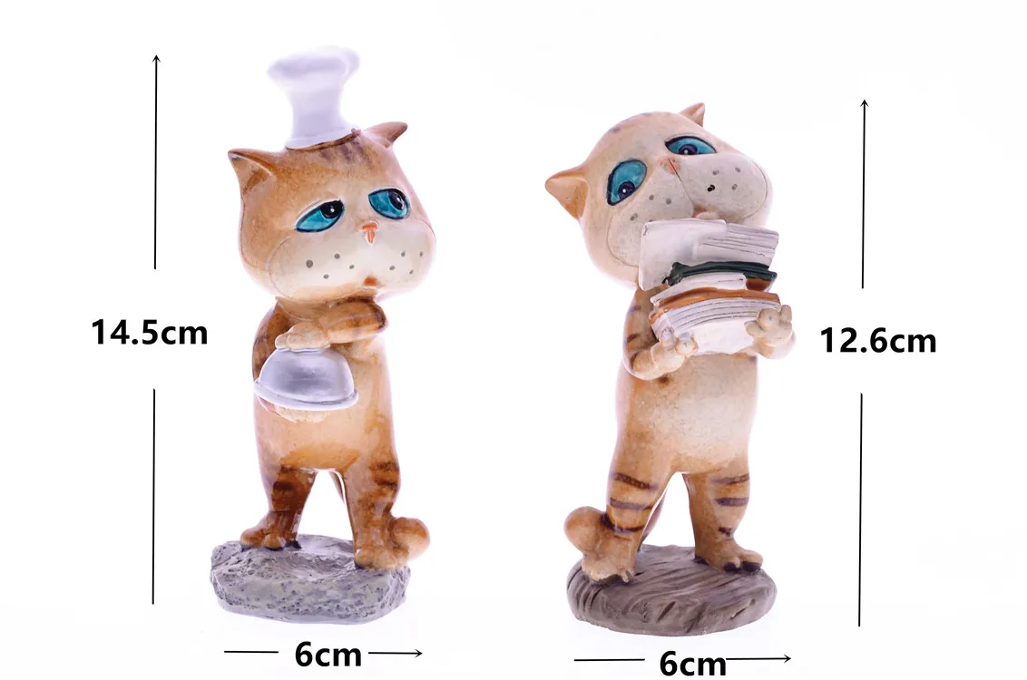 Resin Cat Chef Figurines Statue,MYBLUE 2Pcs/Set Kawaii Garden Animal Nordic Home Room Decoration Accessories, Modern