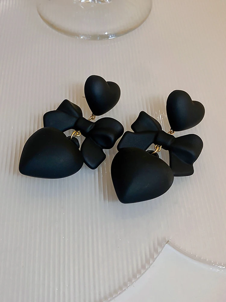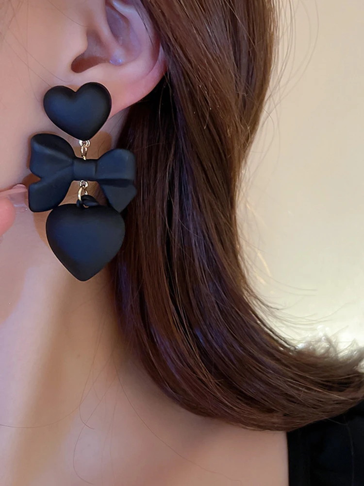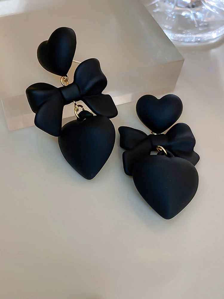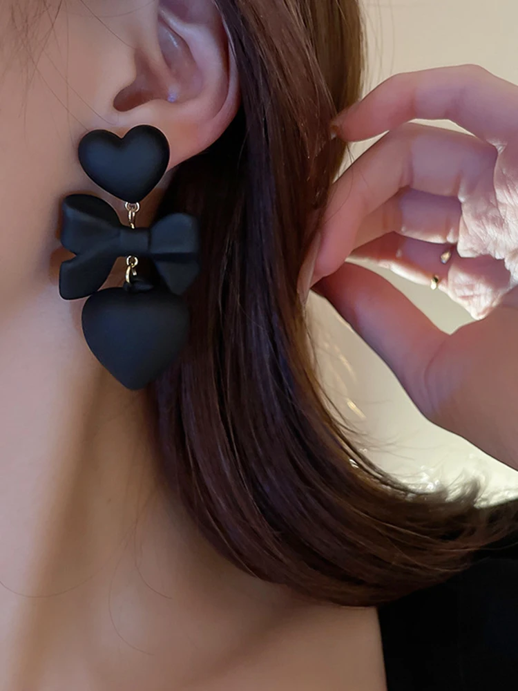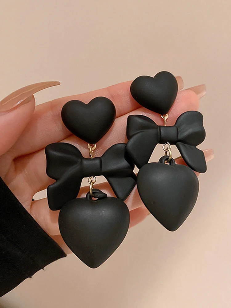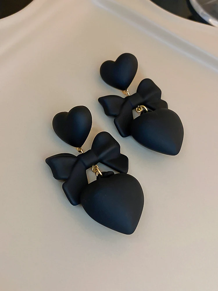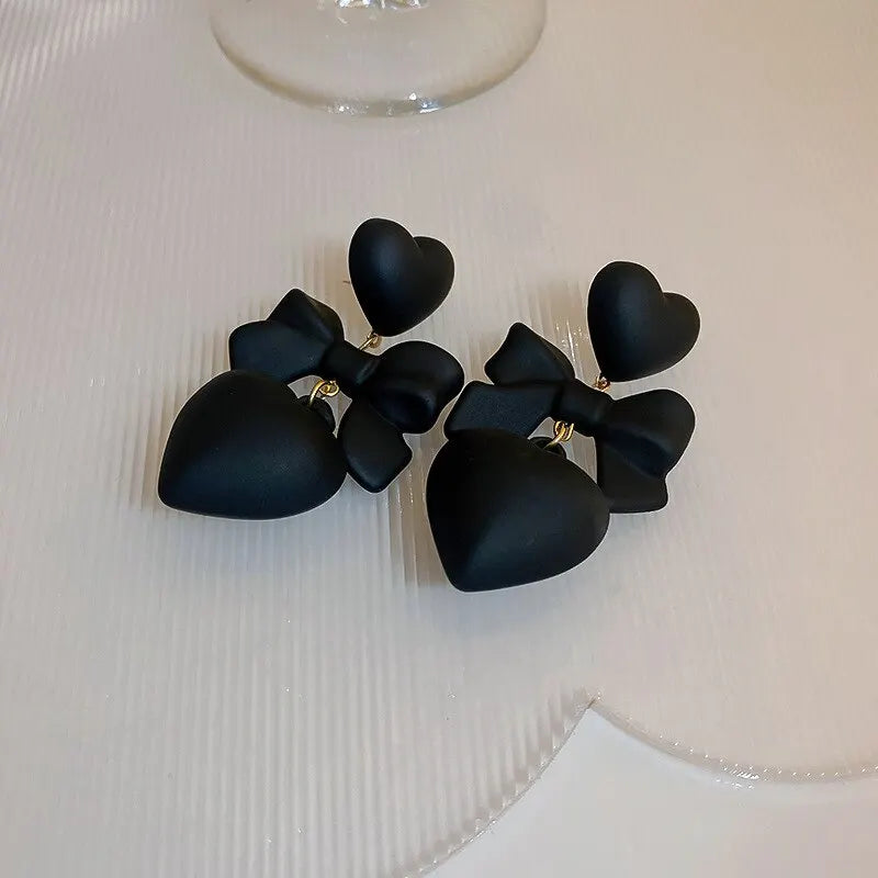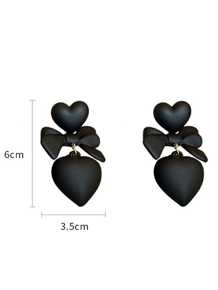 Retro Black Heart Earrings For Women Bowknot Love Drop Earrings Vintage Female Party Ear Jewelry Valentine Day Gifts Wholesale