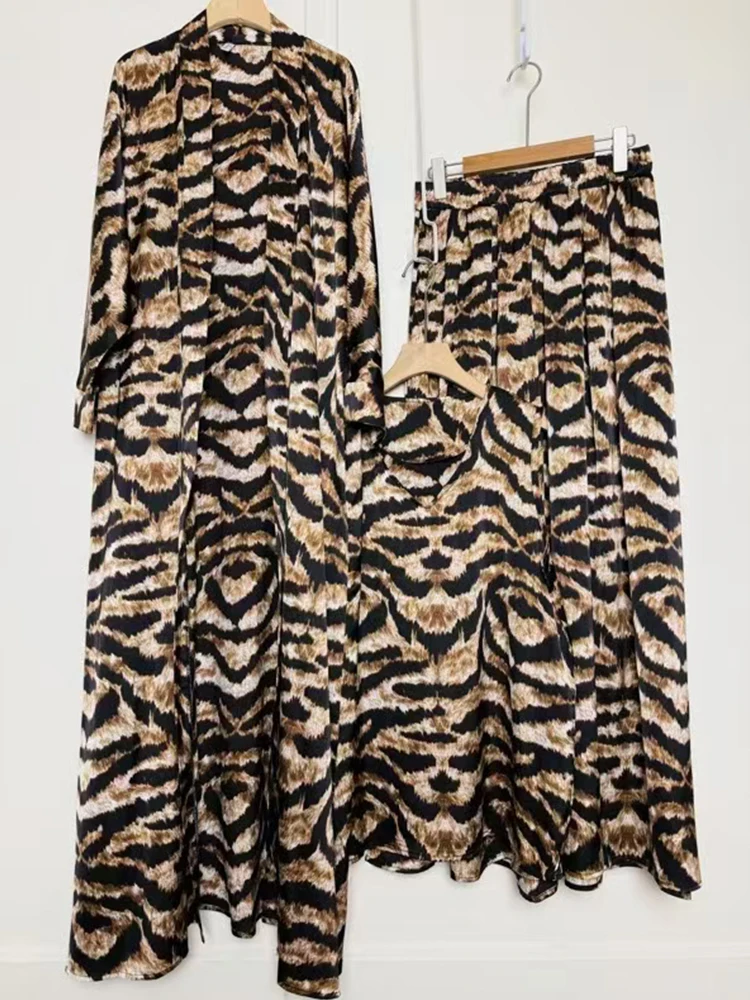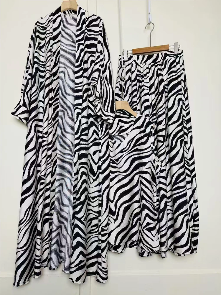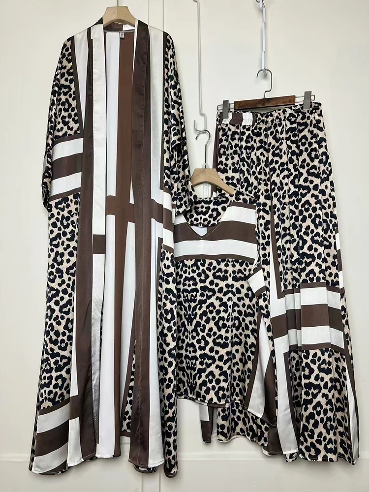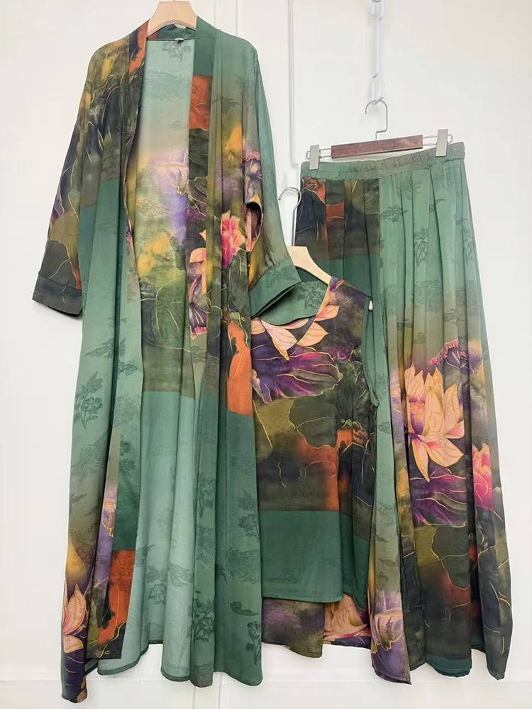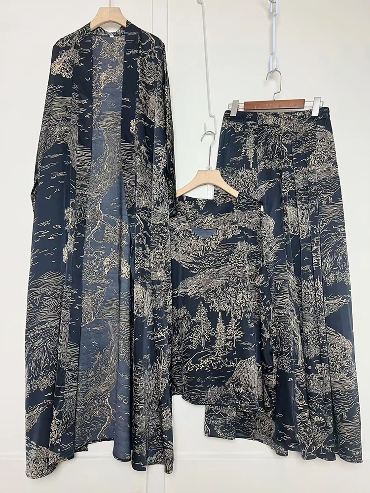 Retro geometric print loose cardigan three-piece set 2025 spring women's new pullover vest + draped loose culottes fashion suit