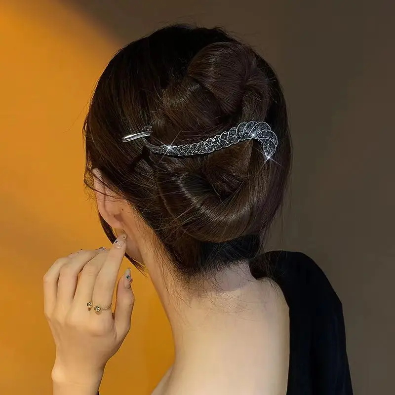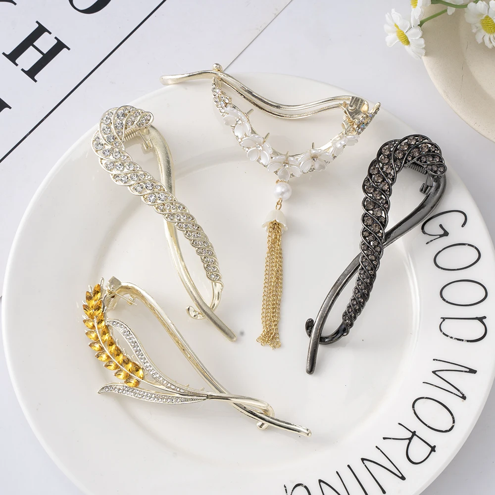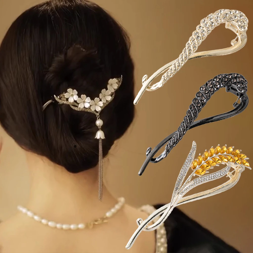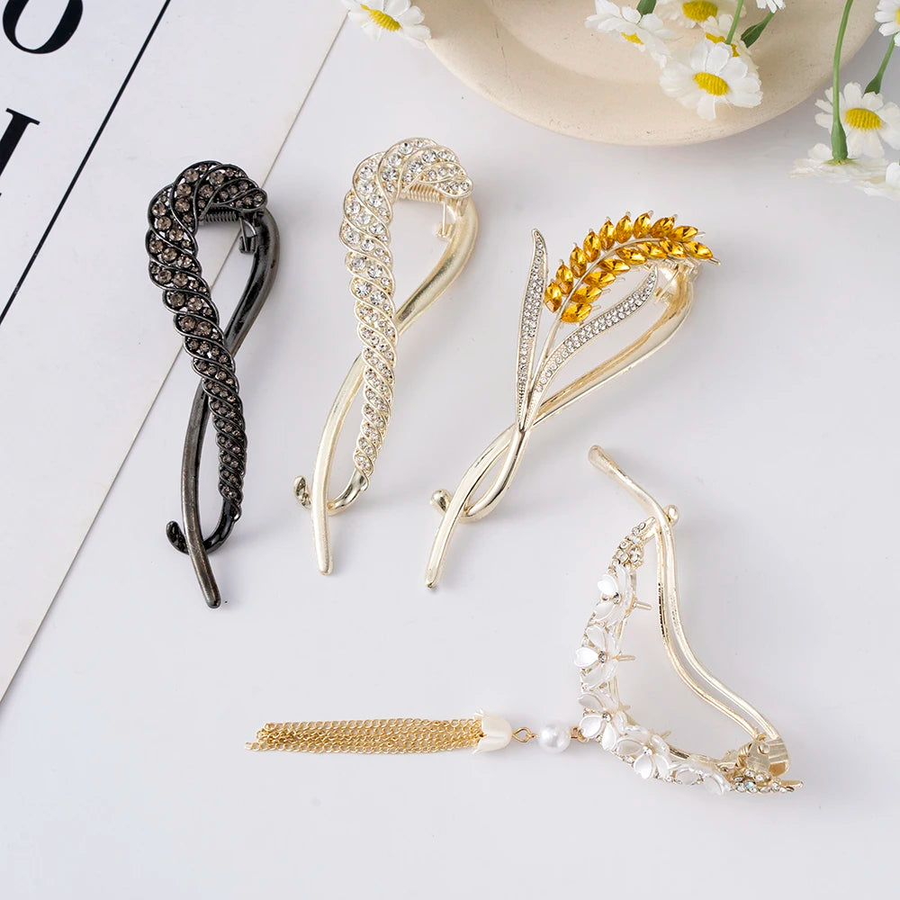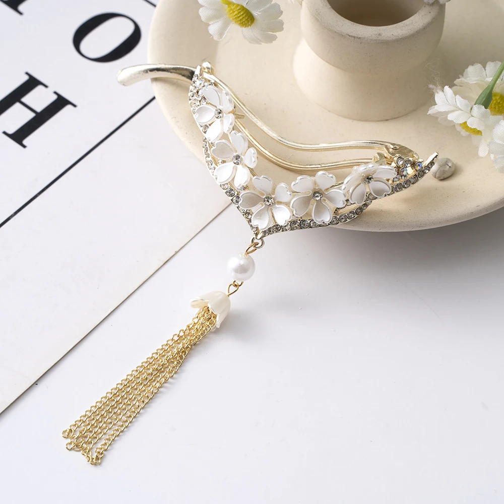 Rhinestone Tassel Hair Claw Clip Bun Women Flower Hairpin Headwear Hairgrip Metal Barrette Banana Twist Hair Accessories Jewelry