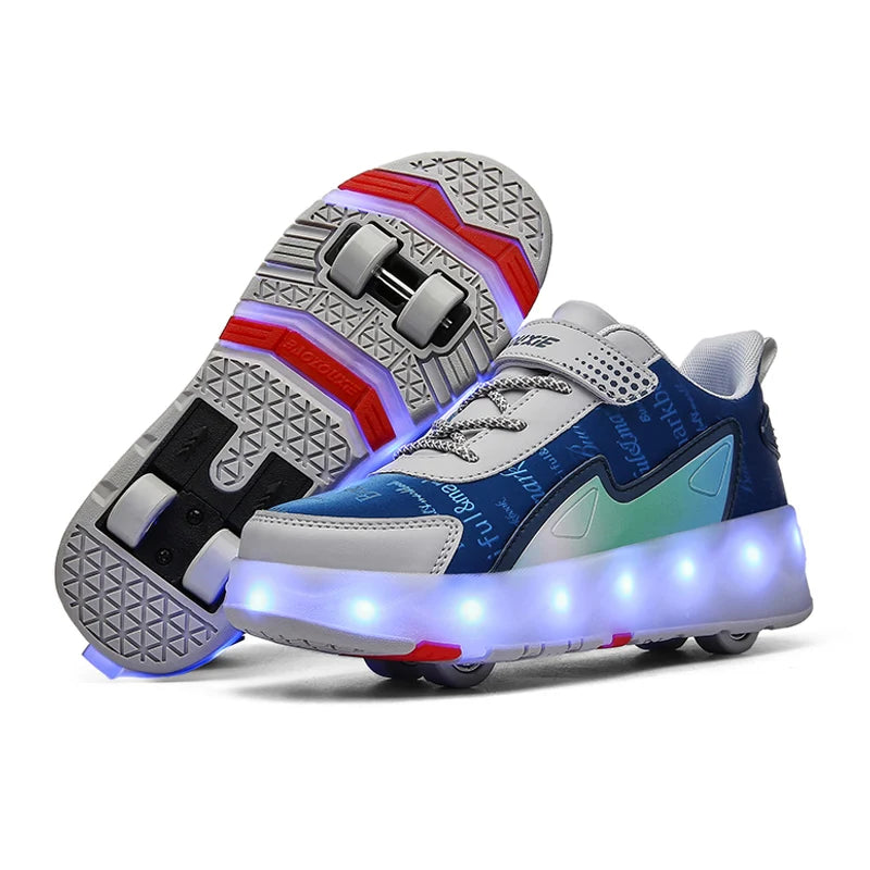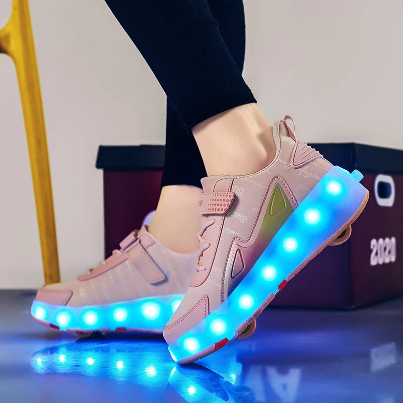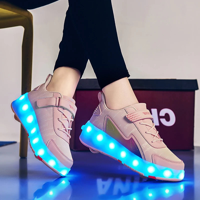 Roller Skate Shoes 4 Wheels Sneakers Children Boys Gift Girls Fashion Sports Casual Led Flashing Light Kids Toys Boots