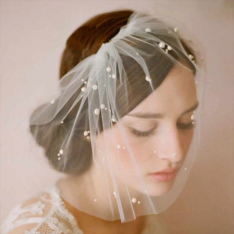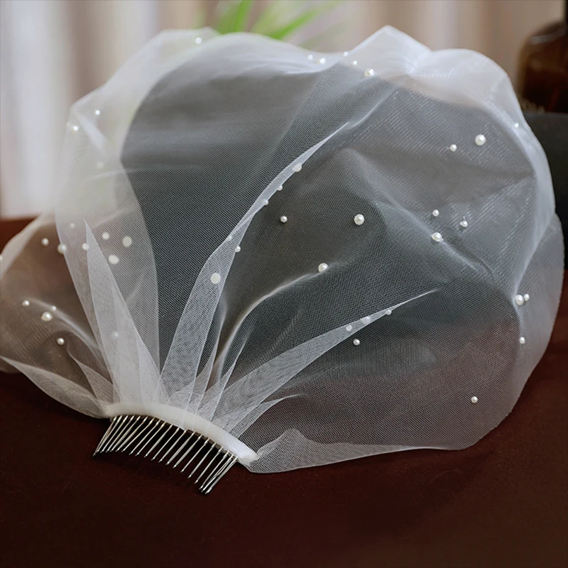 Simple retro pearl embellishment bride wedding dress accessories short travel pat headdress veil hair comb