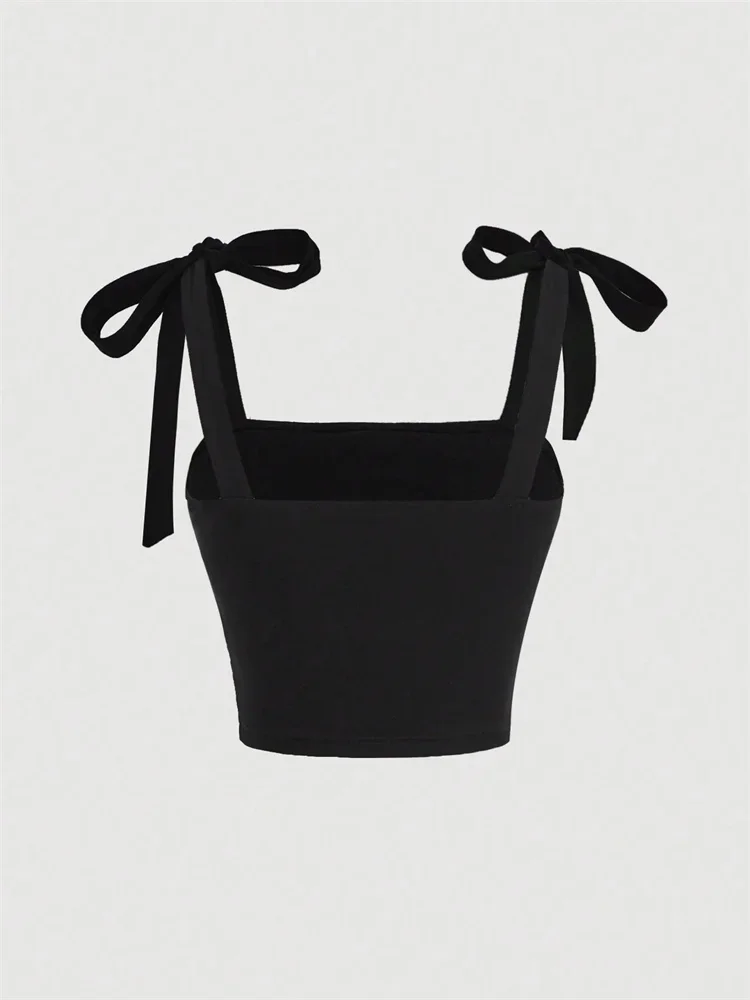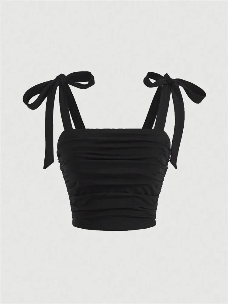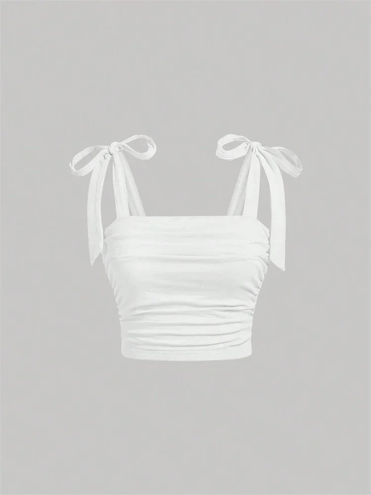 Solid Tie Shoulder Ruched Wide Strap Slim Fit Crop Top for Women clothes Summer 2025 Y2K Clothes Pink Backless Cami Top Streetwear