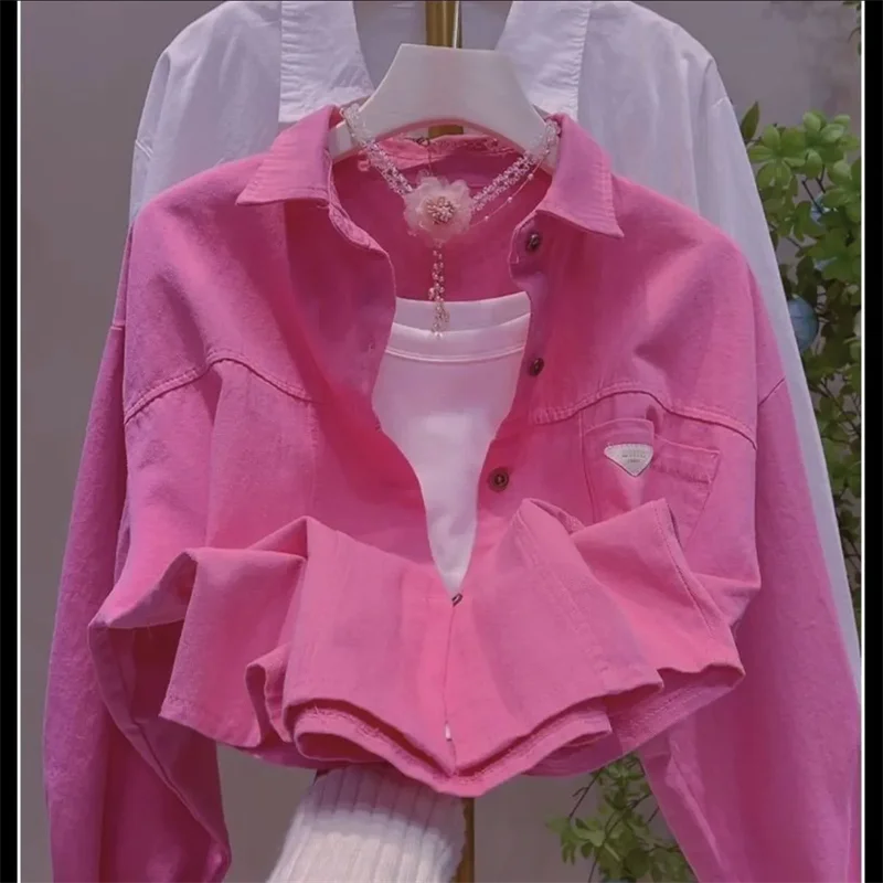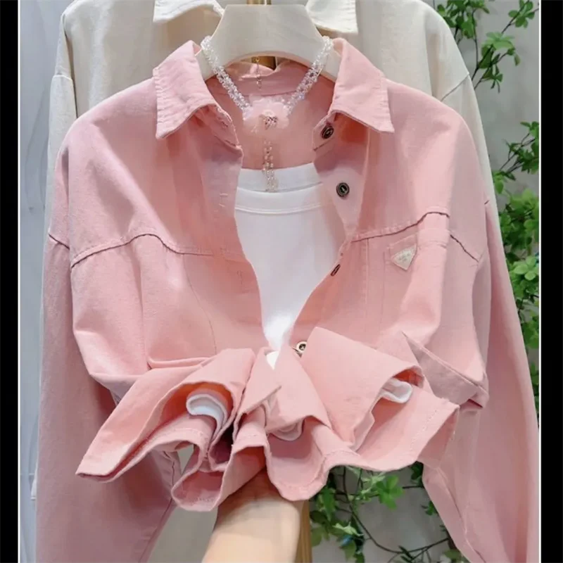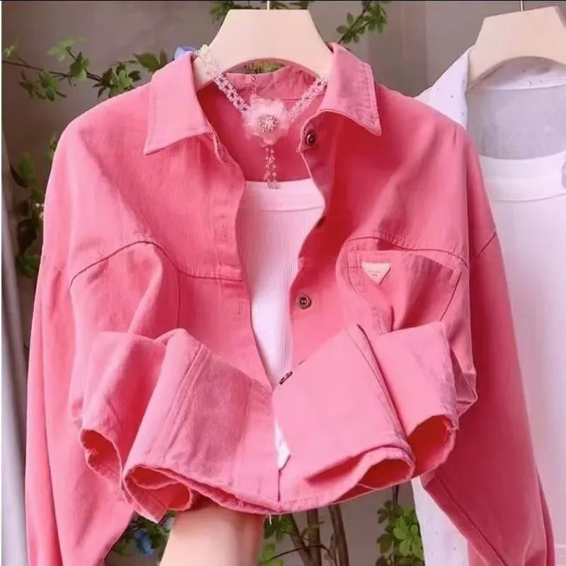 Spring and Autumn Petite Candy Colored Short Denim Jacket 2024 New Loose and Versatile Casual Jacket Top Trend Women