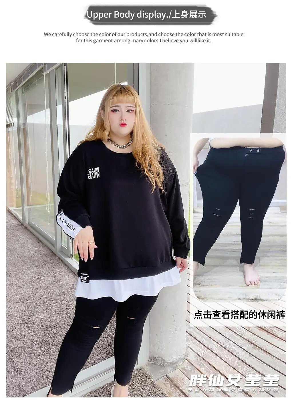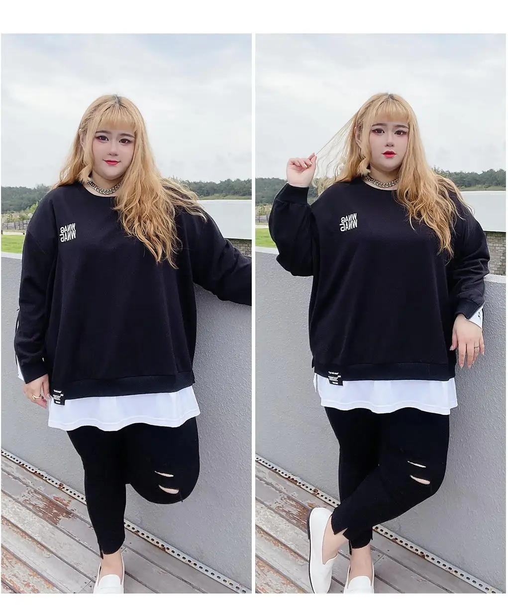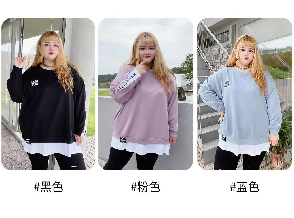 Spring Autumn New Korean Fashion Two Fake Pieces Plus Size Sweatshirt Women Letter Patchwork Casual Lady Tops Oversized Clothes