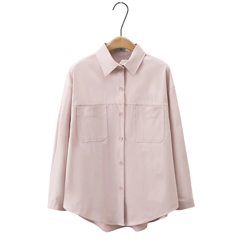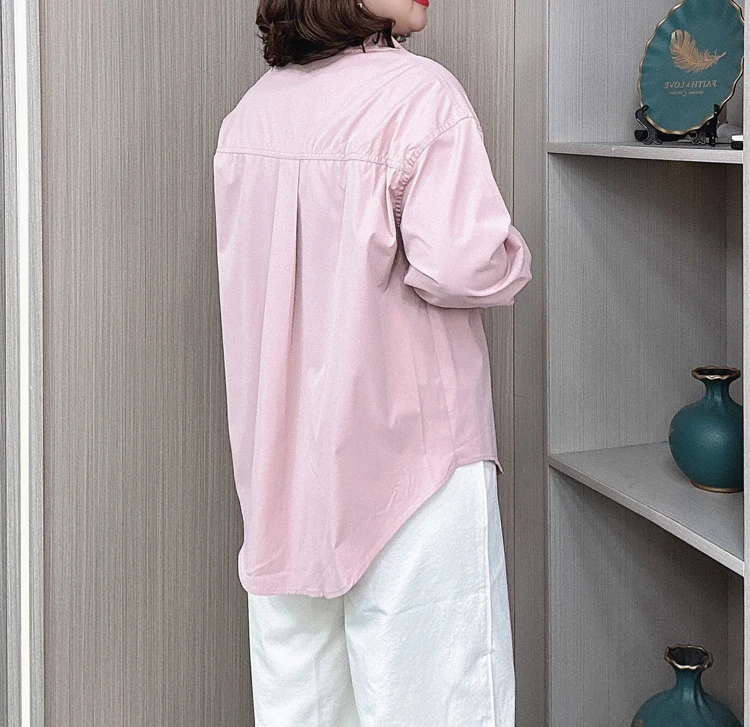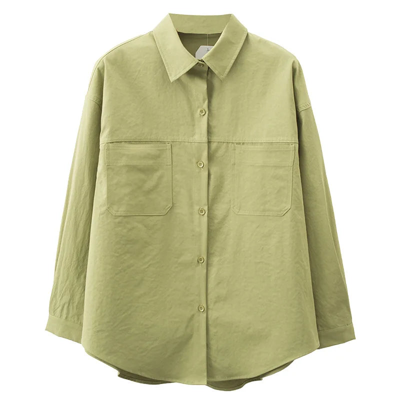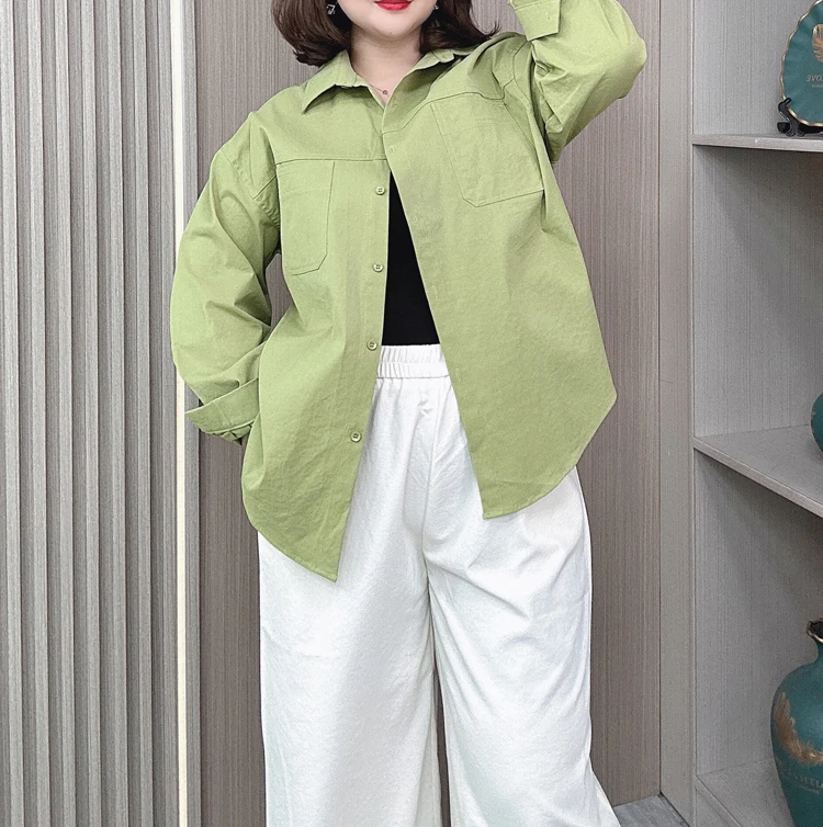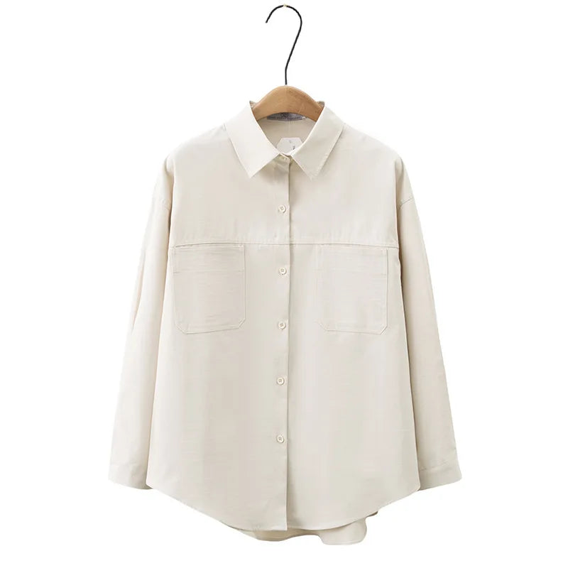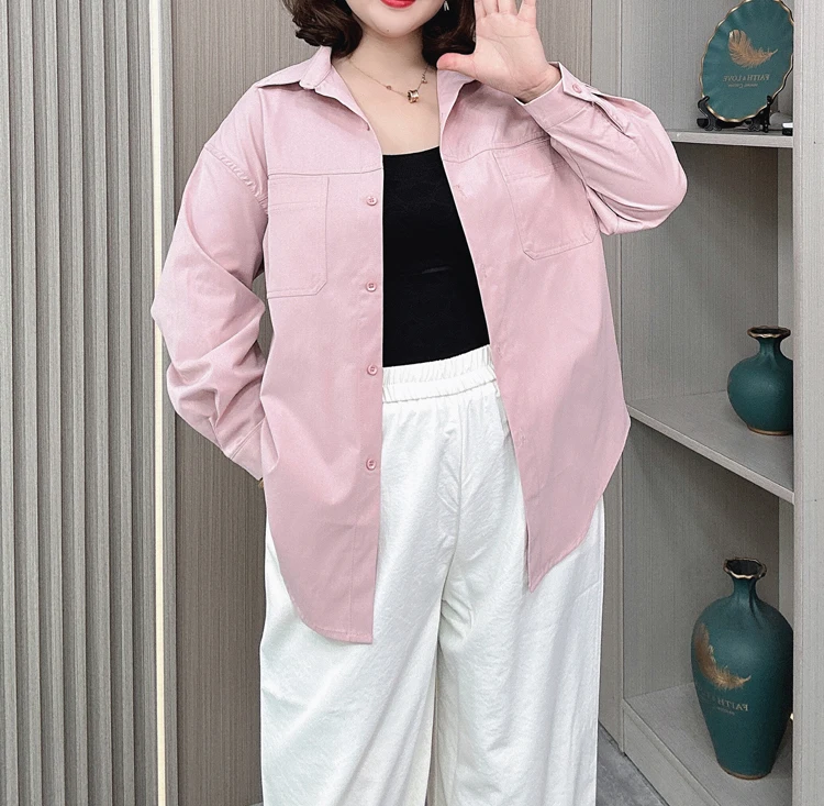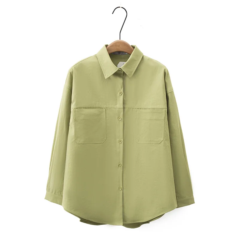 Spring/Autumn New Lapel Long Sleeve Loose Shirt Women Plus Size Casual Style Pocket Shirt-Coat 2314