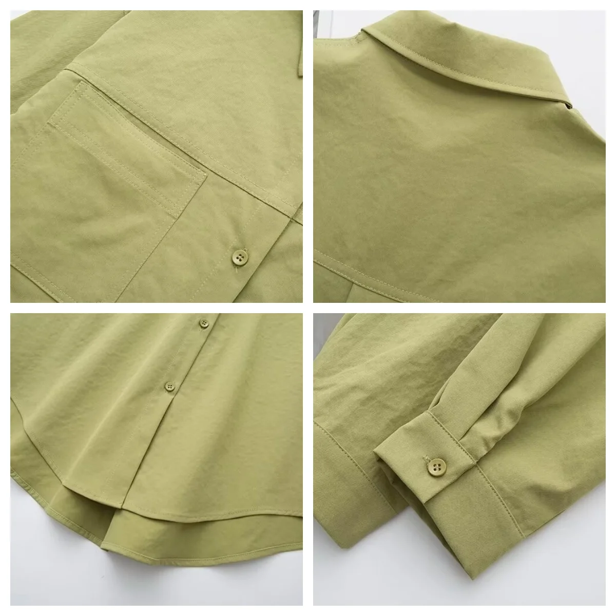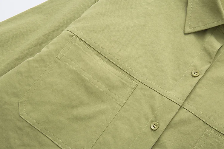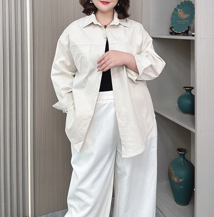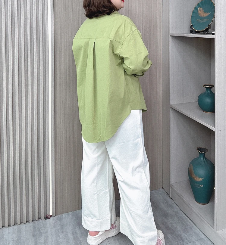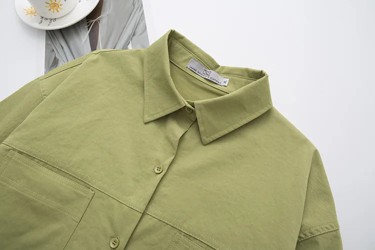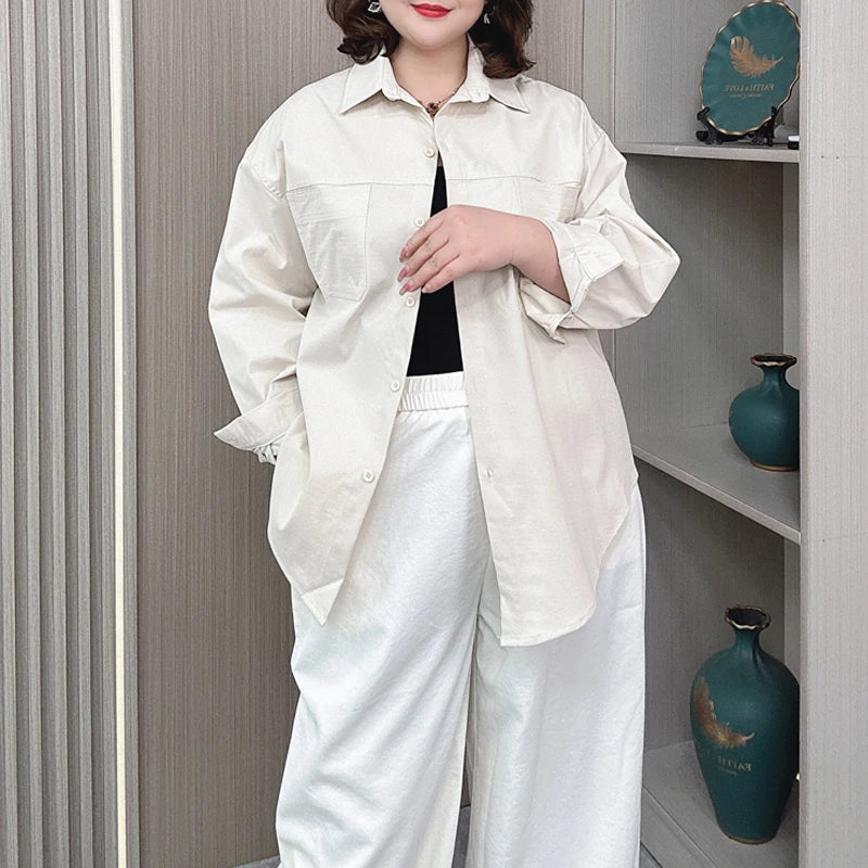Spring/Autumn New Lapel Long Sleeve Loose Shirt Women Plus Size Casual Style Pocket Shirt-Coat 2314