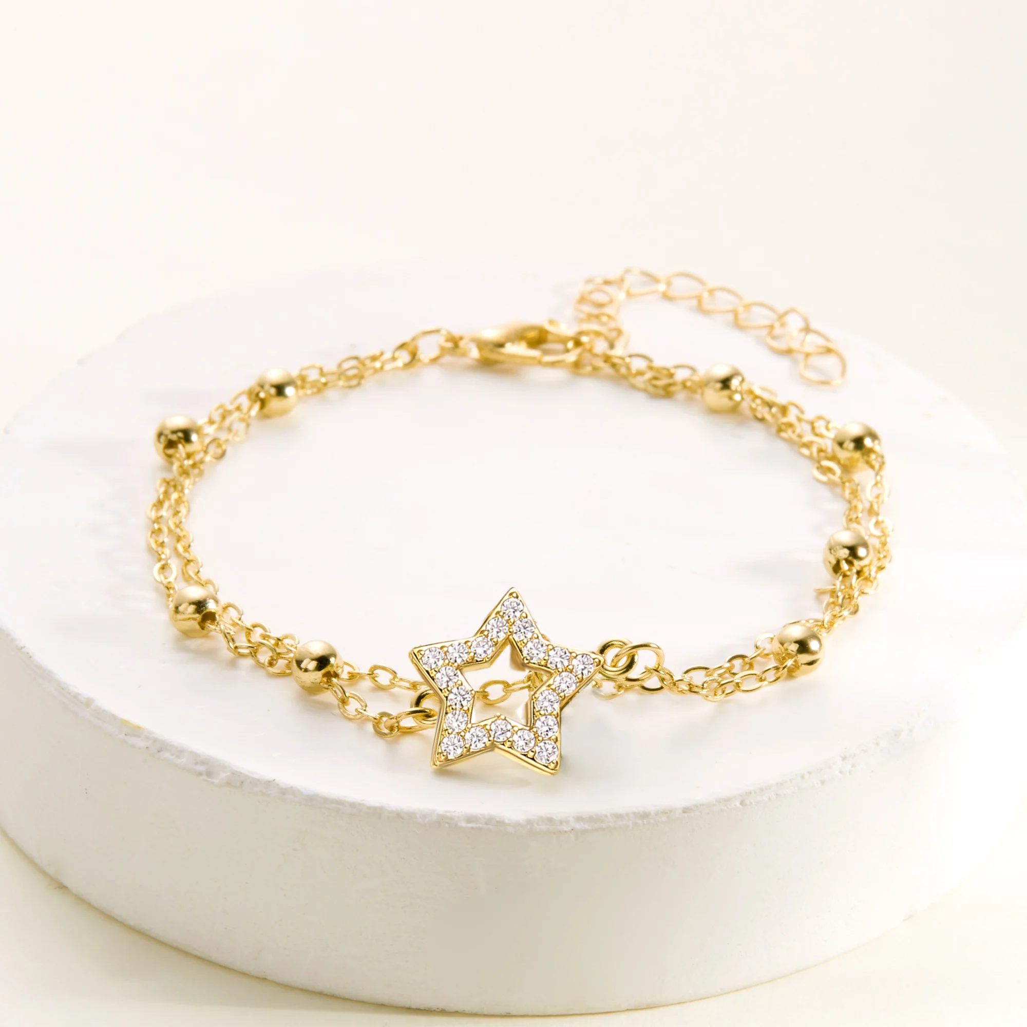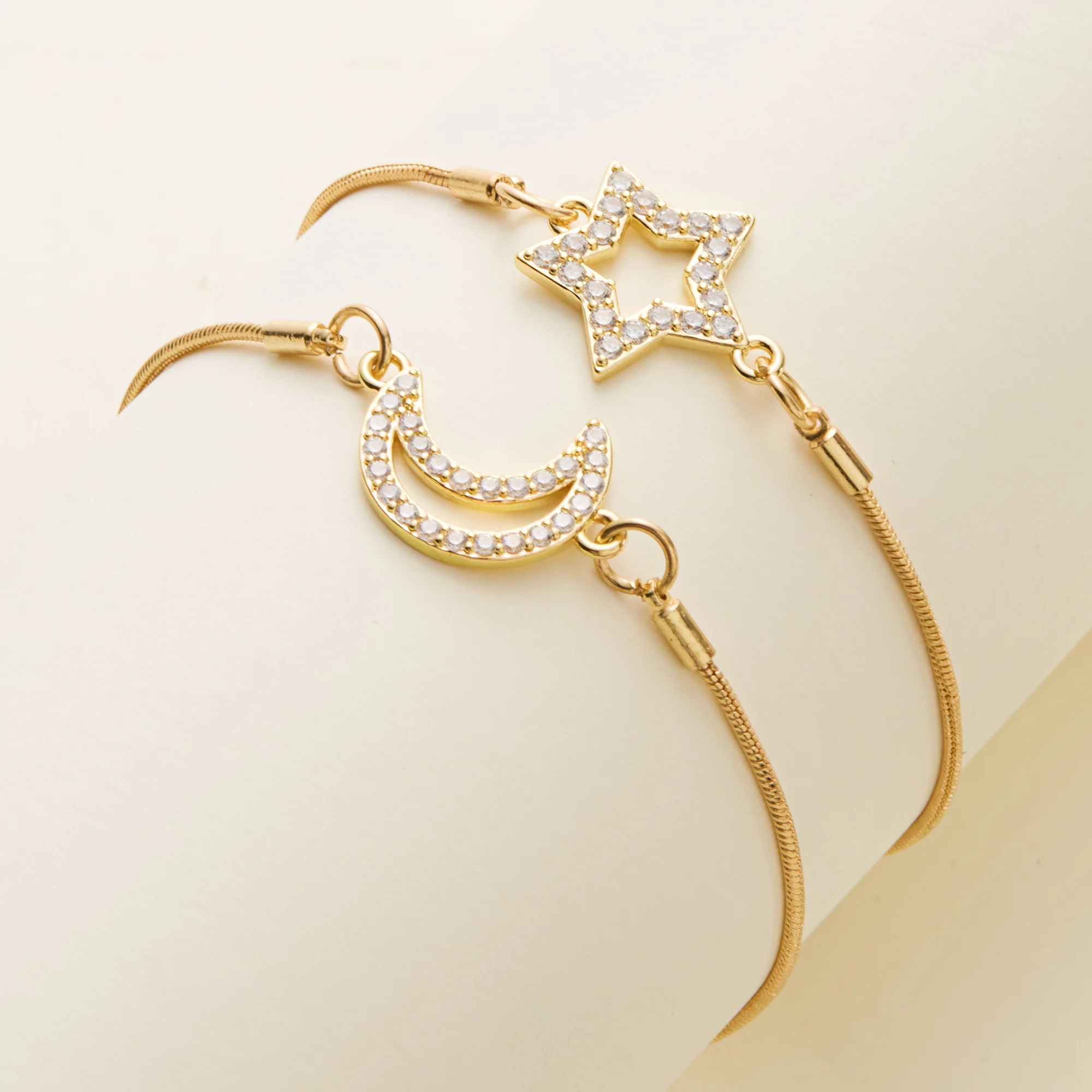 Stainless Steel Hollow Star Moon Bracelet for Women Gold Color Shiny Zircon Metal Chain Bangles Friendship Party Jewelry Gifts