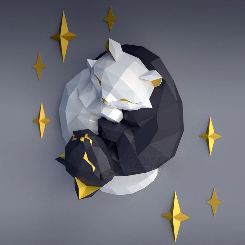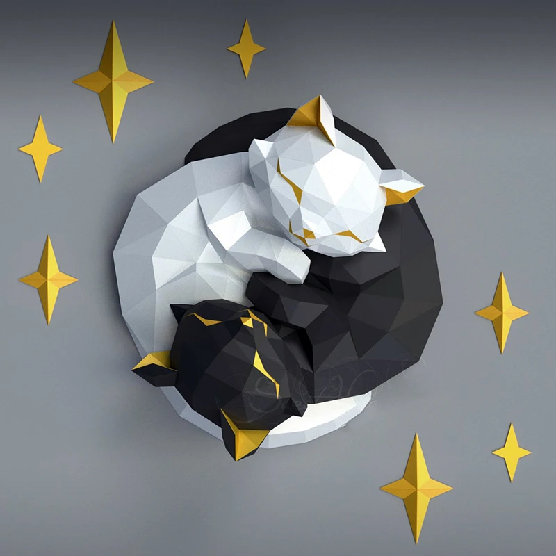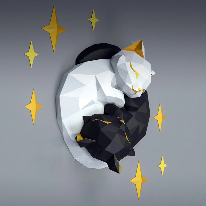 Star Couple Cat Paper Model Home Wall Decor Wedding Decoration Papercraft 3D DIY Creative Hand Made Toys Valentine's Day Gifts
