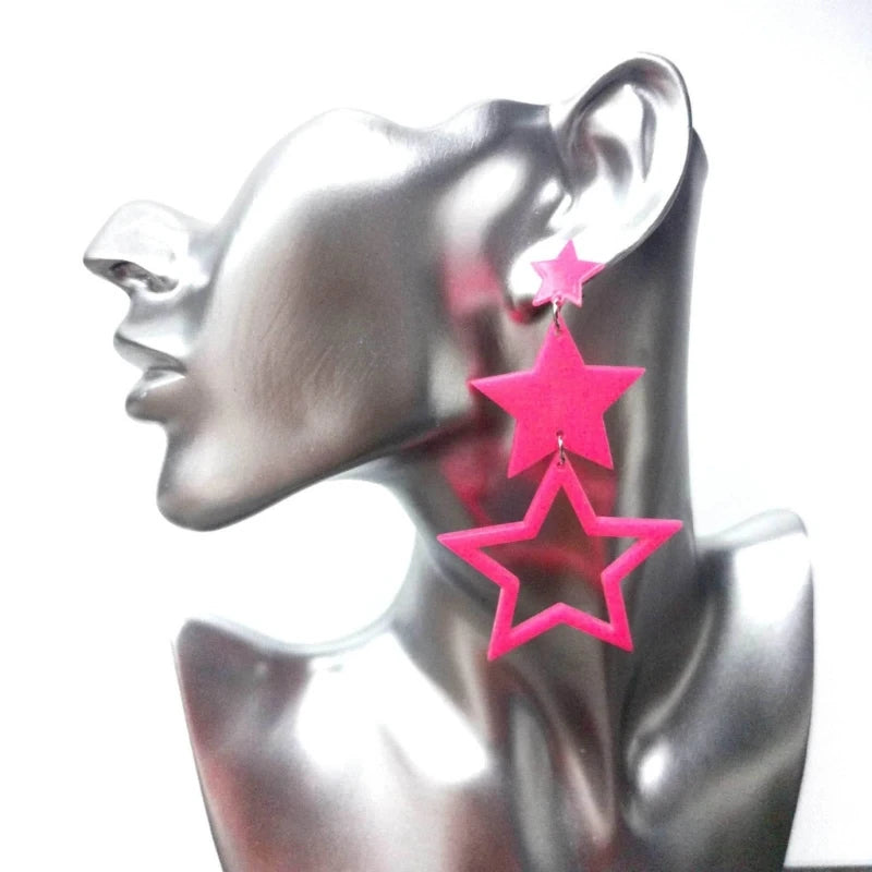 Star Earrings for Women Neon Color Hollow Star Dangle Earrings Sparkle-Star Drop Earrings Jewelry Gift Valentines Day