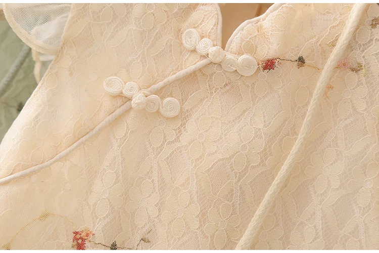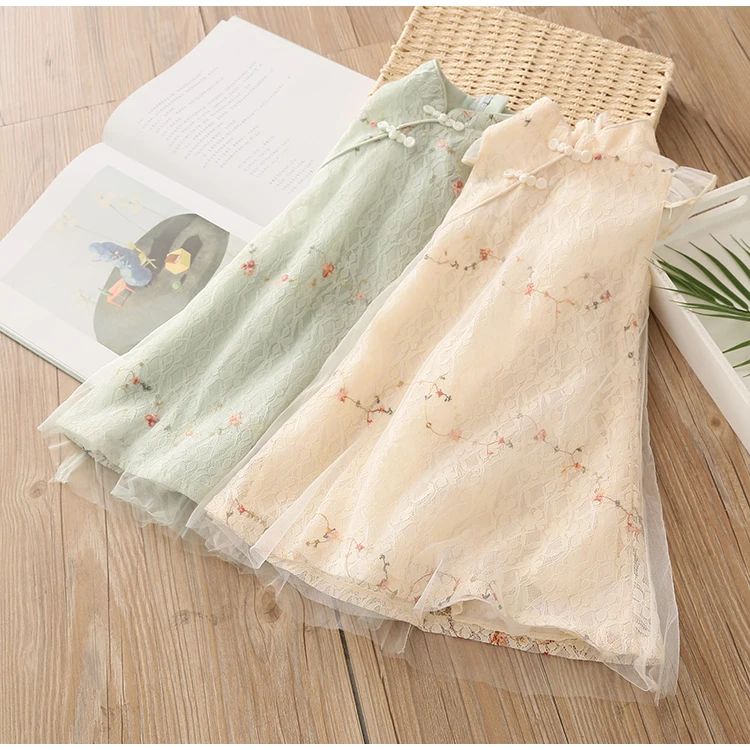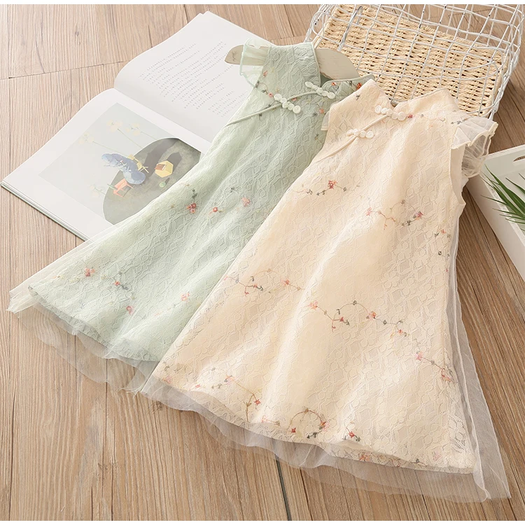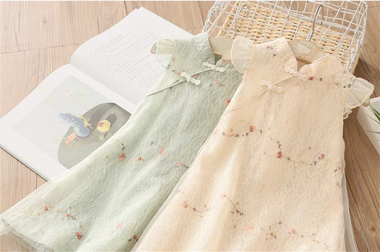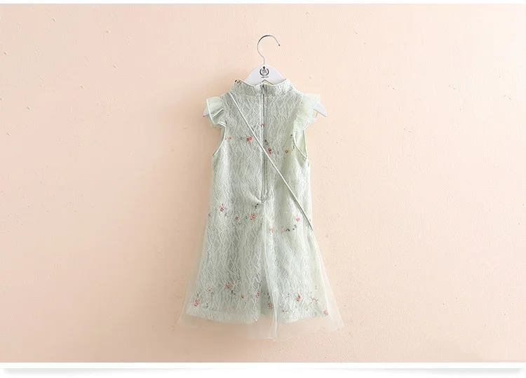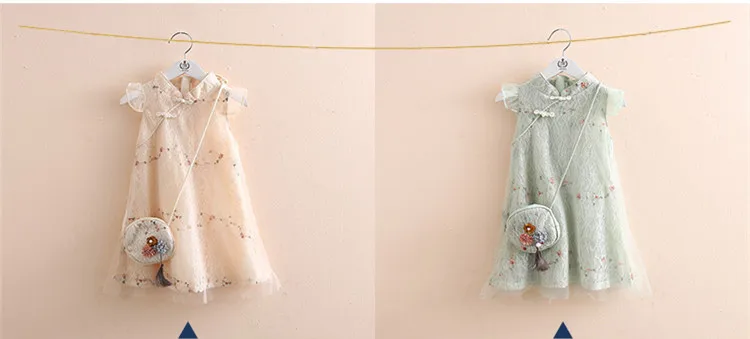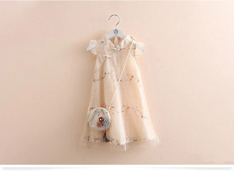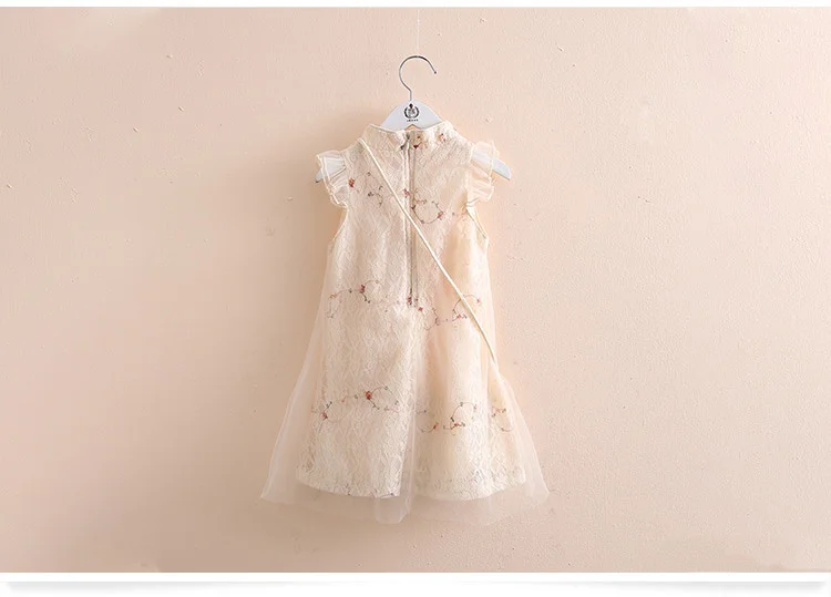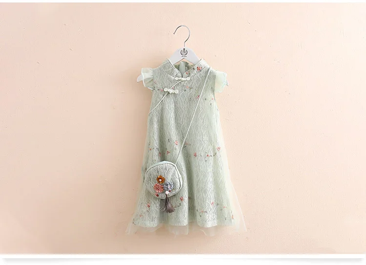 Summer 3 4 5 6 7 8 9 10 11 12 Years Fly Sleeve Lace Cheongsam Dresses With Bag For Kids Girls