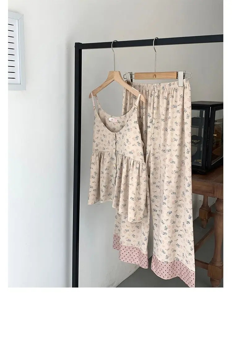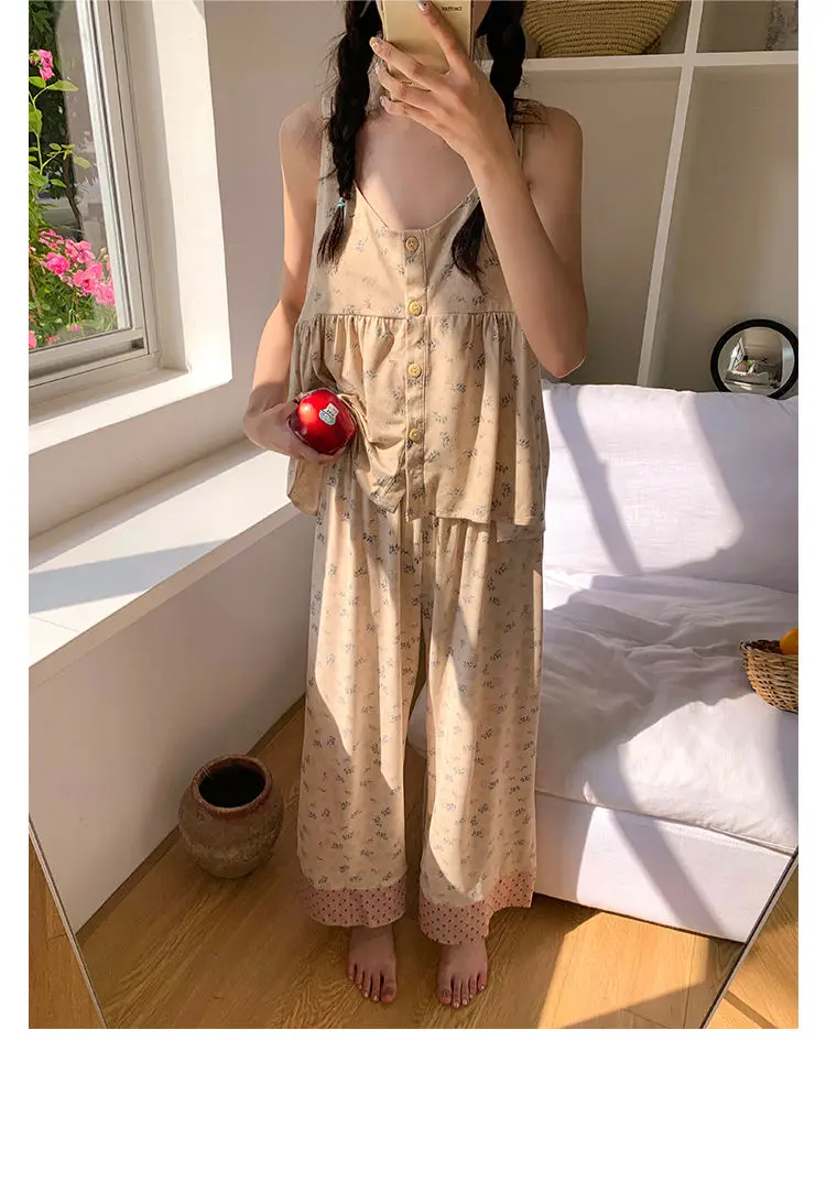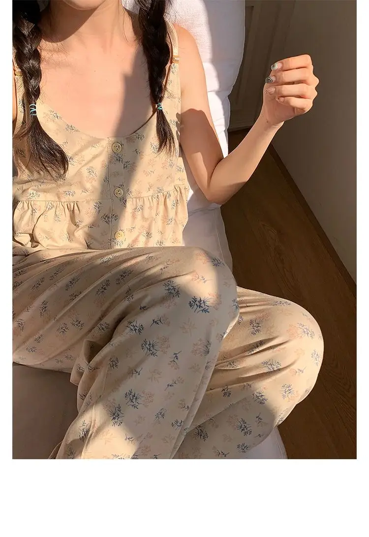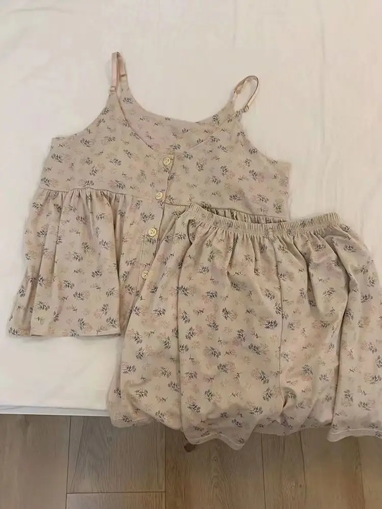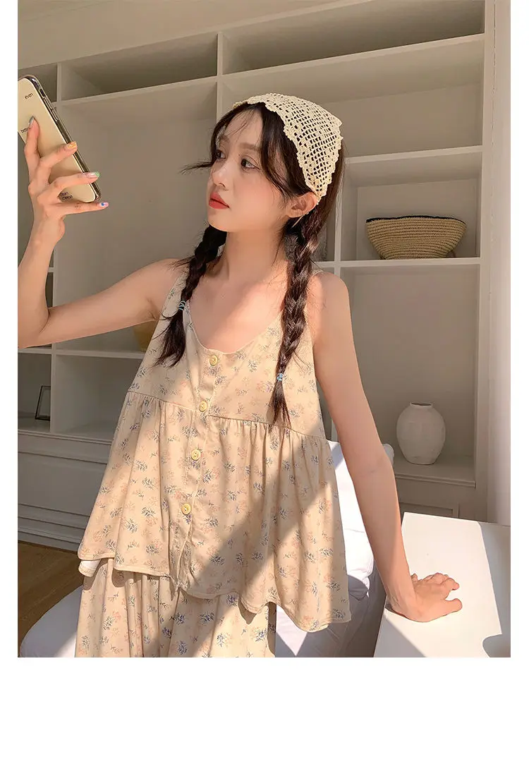Summer Floral Pajama Sets Women Home Prairie Chic Sleeveless Girlish Sleepwear Thin Casual Students Dormitory Lounge Clothing