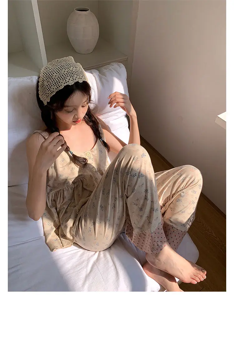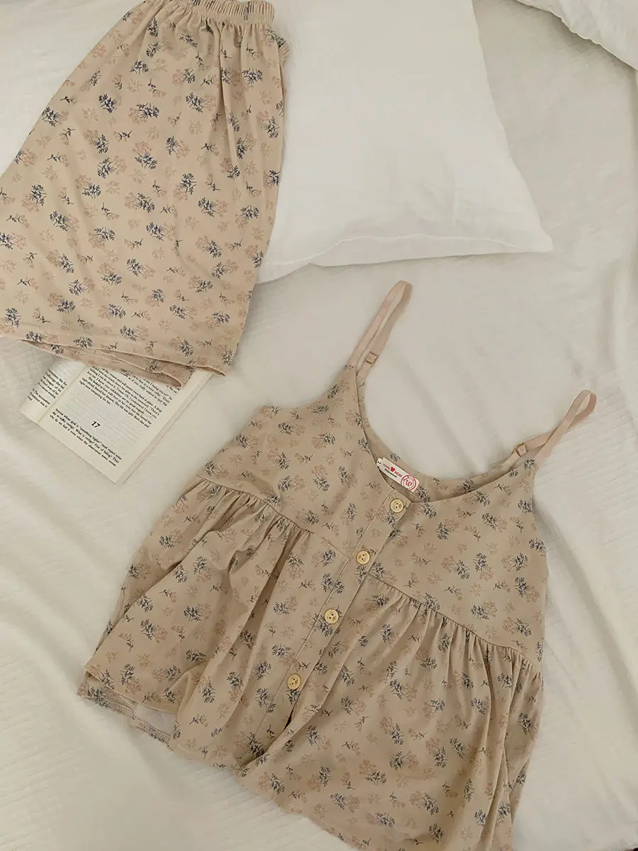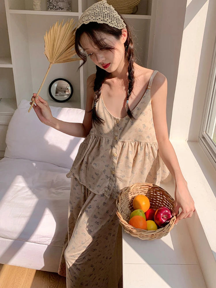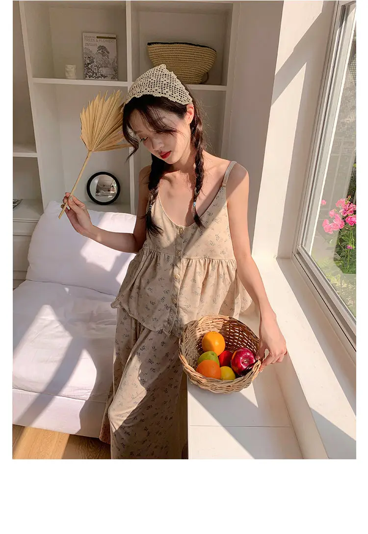 Summer Floral Pajama Sets Women Home Prairie Chic Sleeveless Girlish Sleepwear Thin Casual Students Dormitory Lounge Clothing