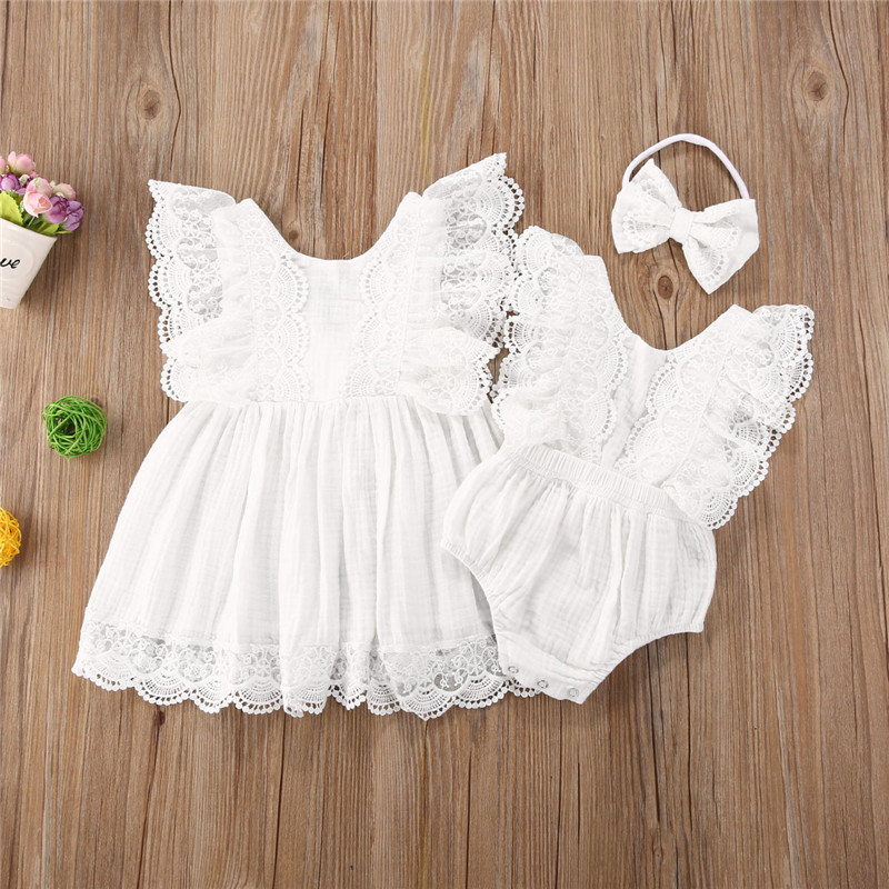 Summer Kid Baby Girls Family Matching Outfits Sleeveless Lace Elegant Romper Dress Outfits Baby Girls Clothes Outfits