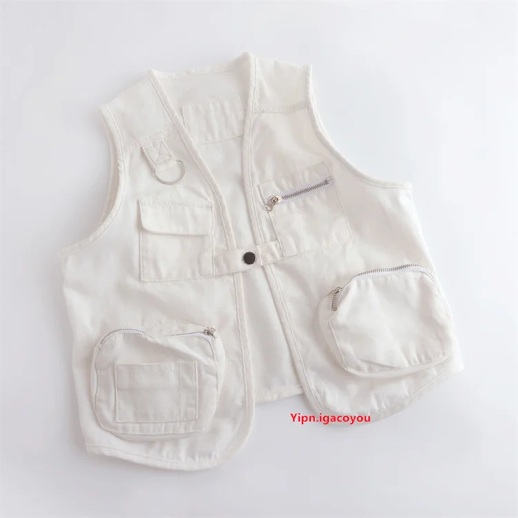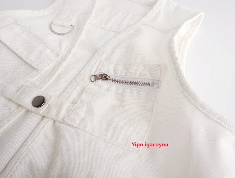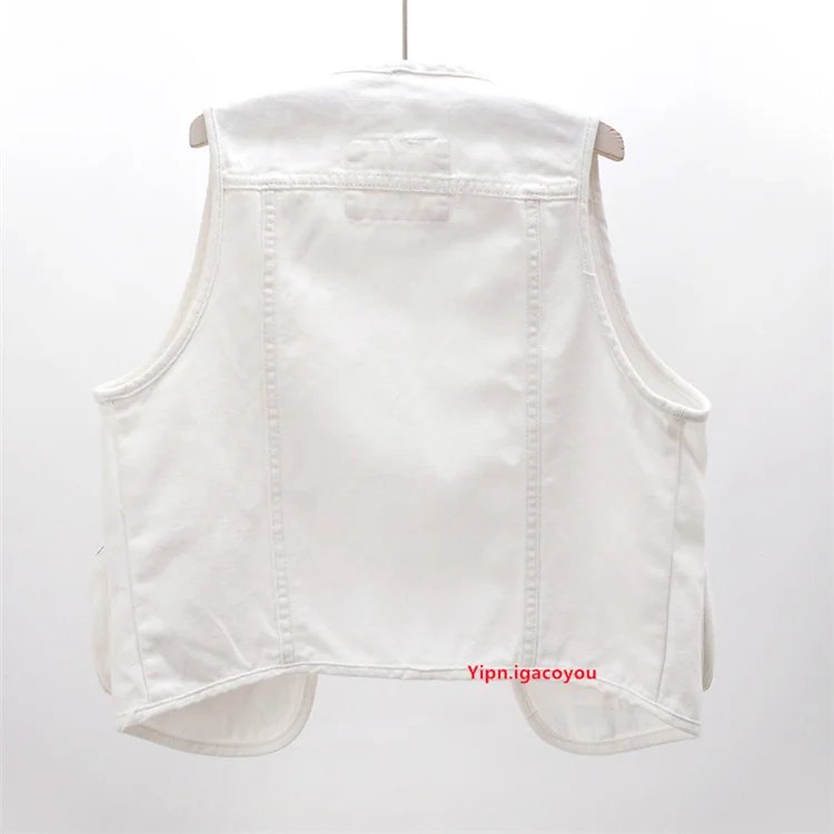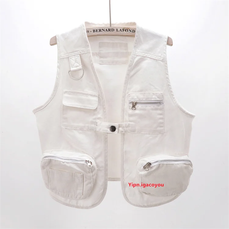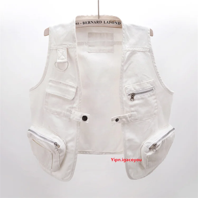 Summer Korean clothes White Denim Vest Women Cardigan Waistcoat Loose Short Big Pocket Sleeveless Jacket Jeans Vests Female Streetwear