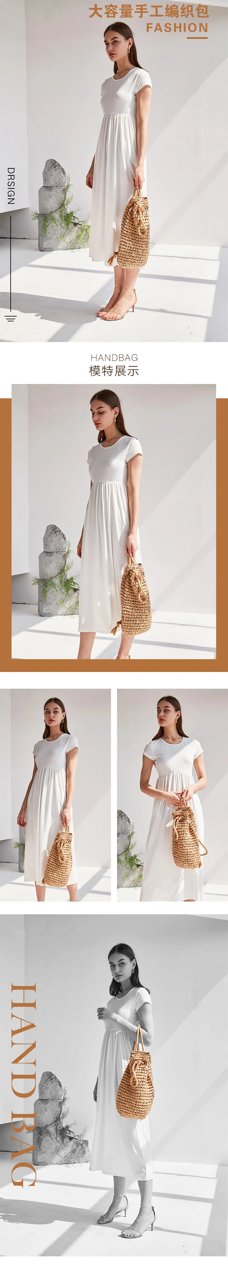 Summer Straw Backpack for Women Handmade Drawstring Beach Shoulder Bags Raffia Rattan Woven Travel Handbags bali lady backpacks