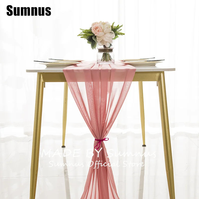 SUMNUS Pink Chiffon Wedding Tablecloth Dining Table Cover Wedding Room Decoration TableclothFor Wedding Party