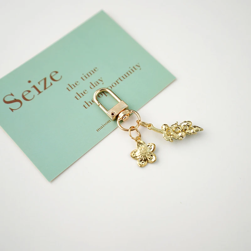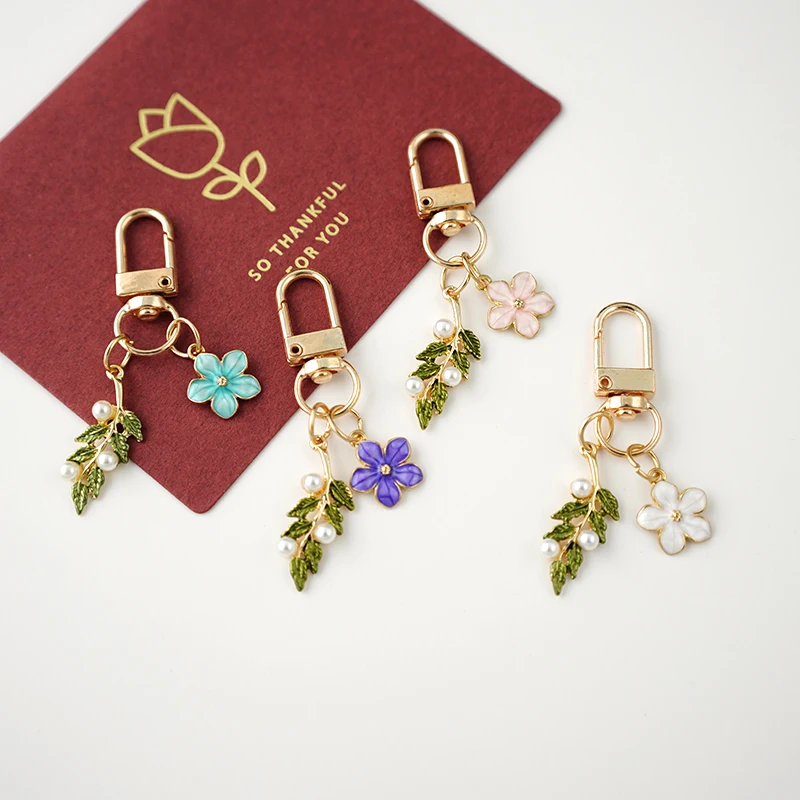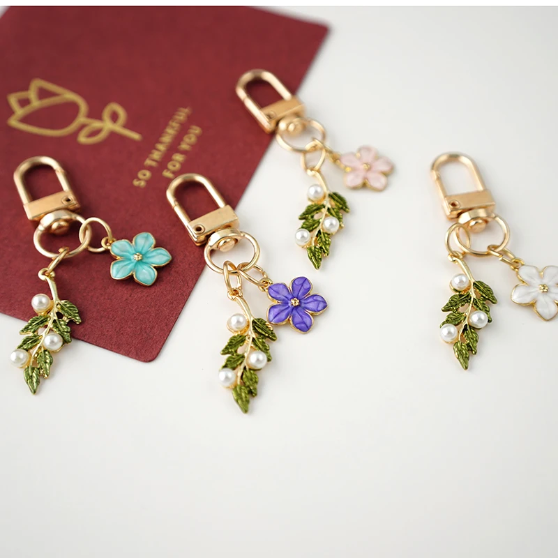 Sunflower Flowers Glass Green Leaf Keychain For Women Trinket Key Chains Ring Car Bag Pendent Charm AirPods Accessories x284