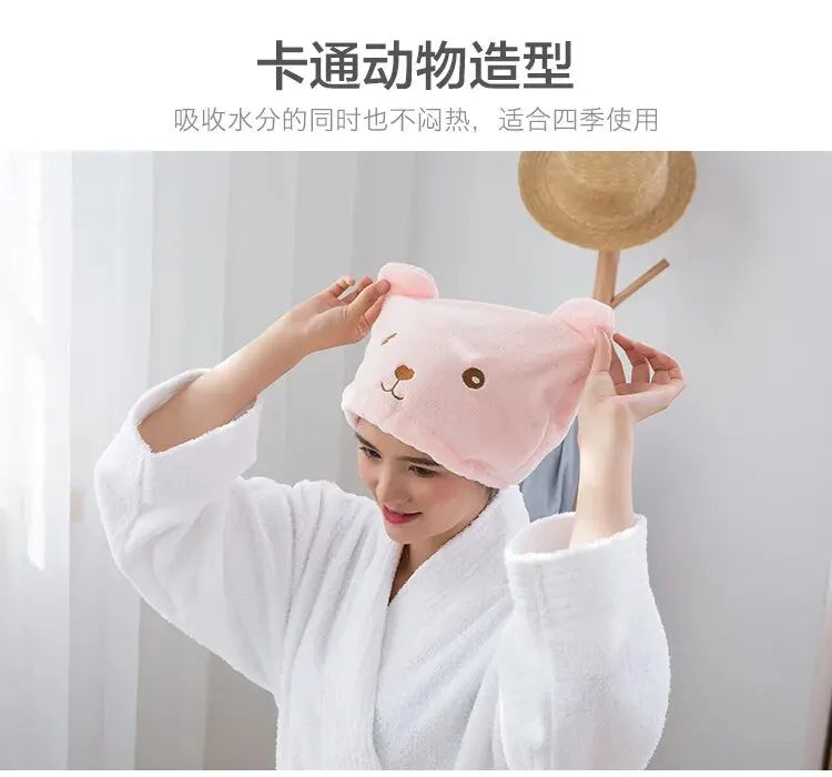 Super Absorbent Hair Drying Bath Towel Cap Cute Cartoon Bear Microfibre Soft Hair Dry Wrap Bathroom Accessories Bonnets