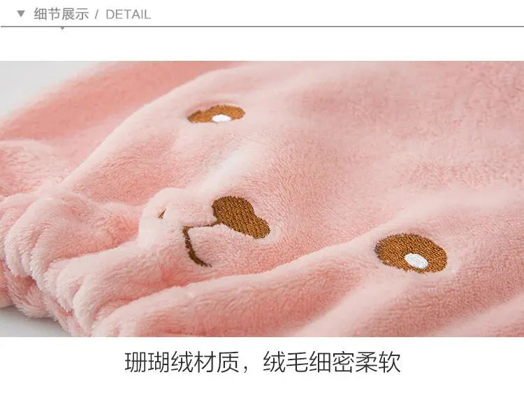 This dry hair hat has lovely bear pattern, convenient to use and comfortable to wear.