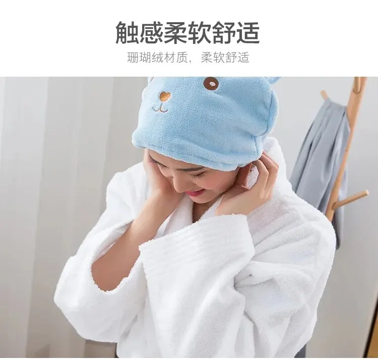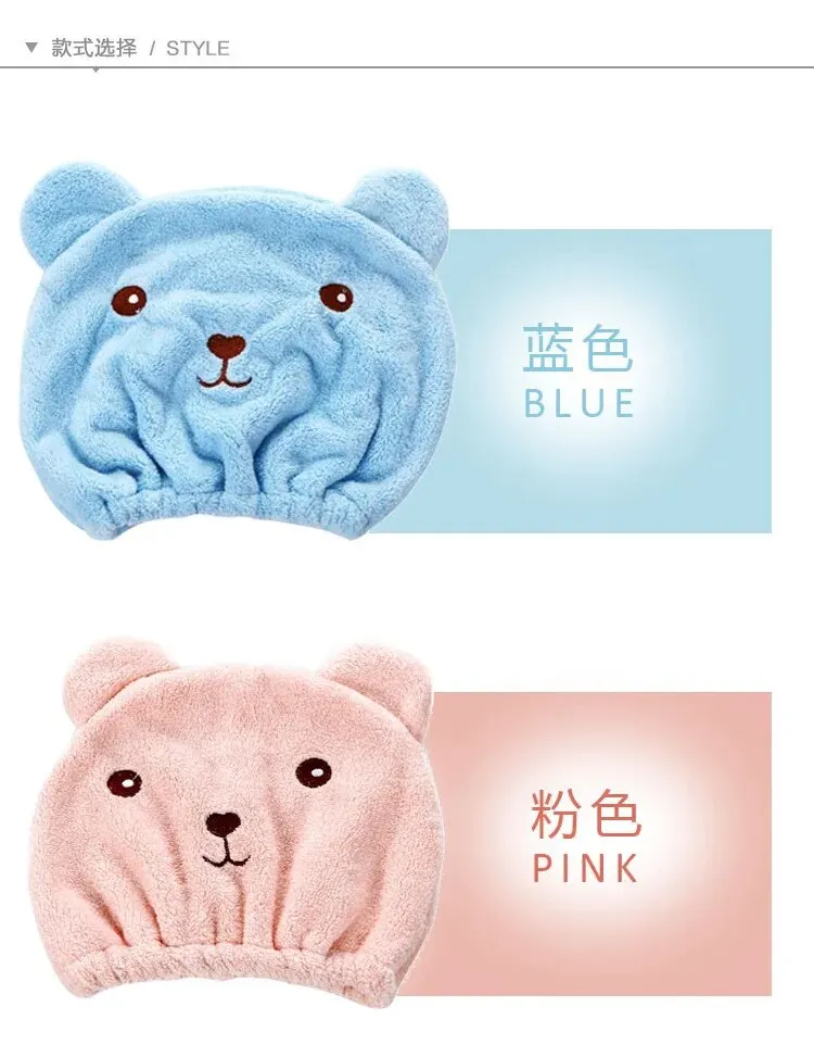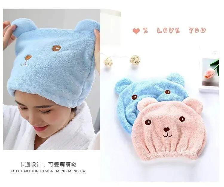 Super Absorbent Hair Drying Bath Towel Cap Cute Cartoon Bear Microfibre Soft Dry Hair Wrap Bathroom Accessories Bonnets