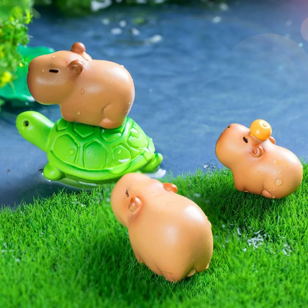 Swimming Capybara Figure Toys Take Bath Cycling Simulation Capibara Model Tortoise Cartoon Capybara Animals Figures Kid