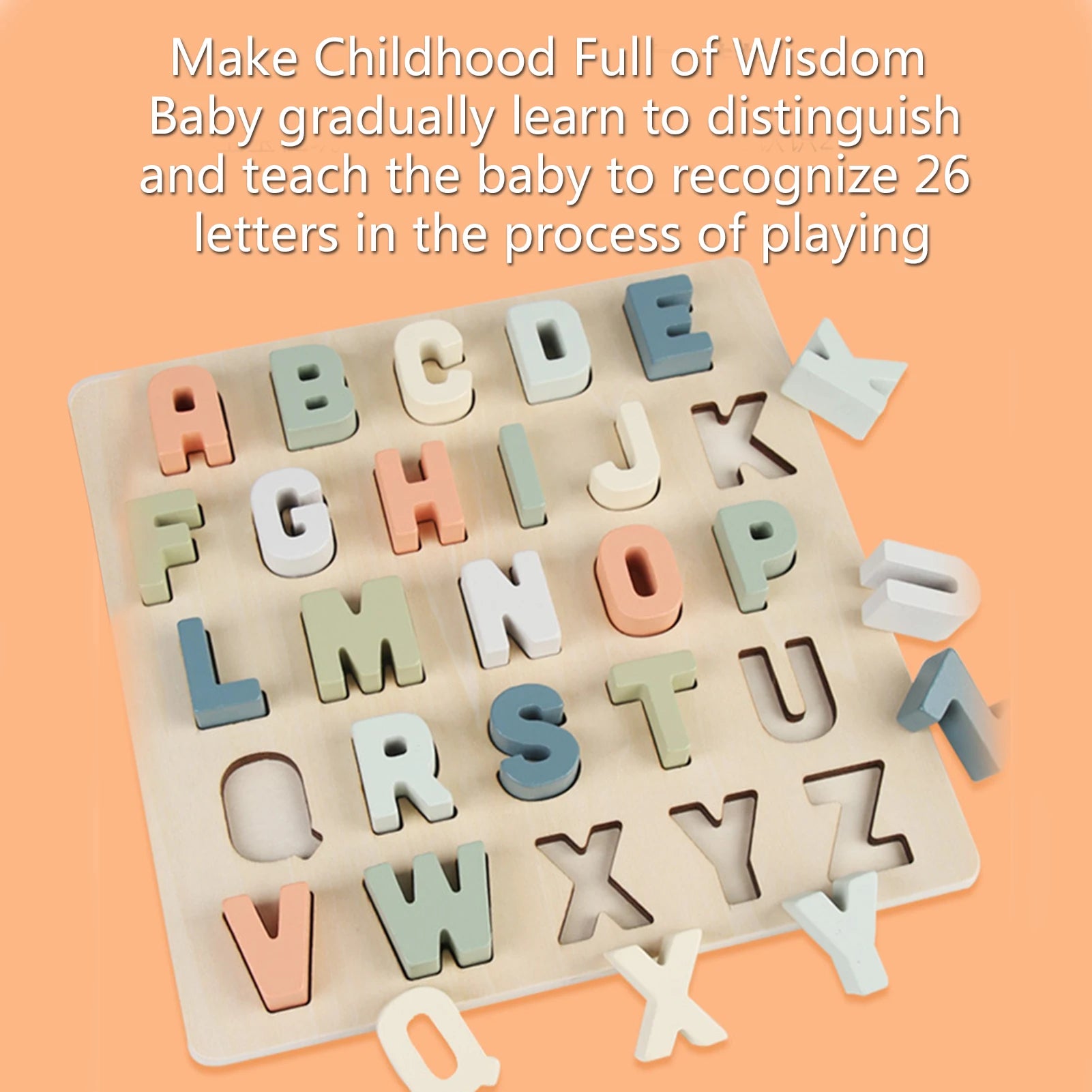 Toddlers Wooden ABC Letter Puzzles Early Educational Learning Toys 3D Puzzle Board Game Alphabet Blocks For Kids Birthday Gifts