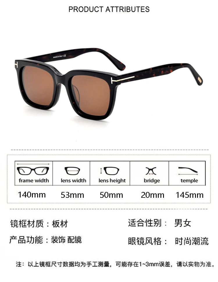 Tom Sunglasses Ft0646 Square Large Frame Acetate Sunglasses Anti-Uv Sun Protection Fashion High-End Polarized Men's and Women's Glasses