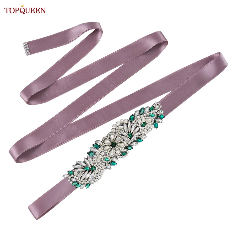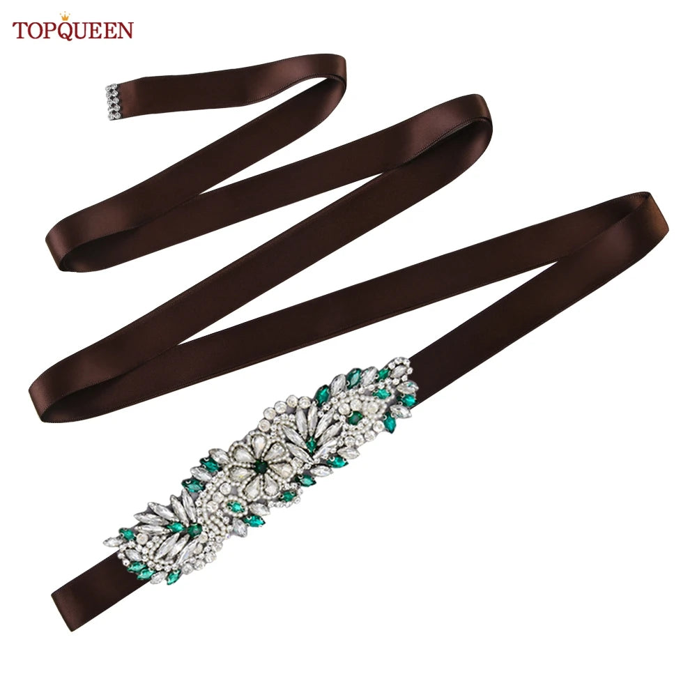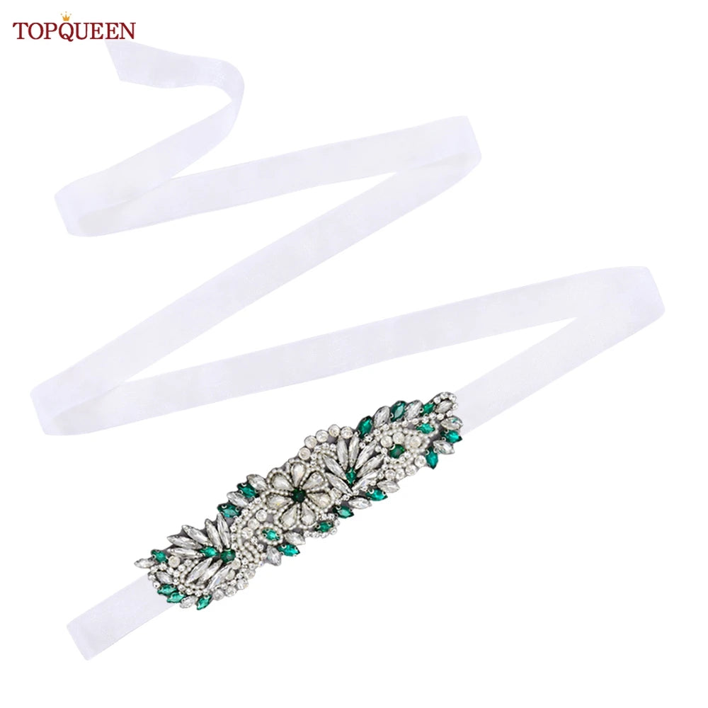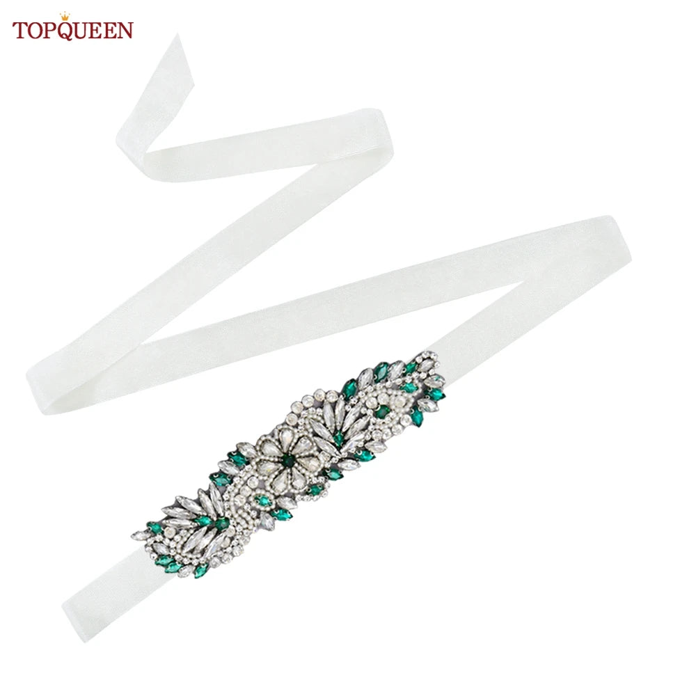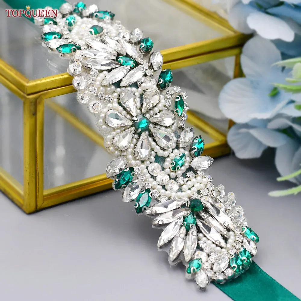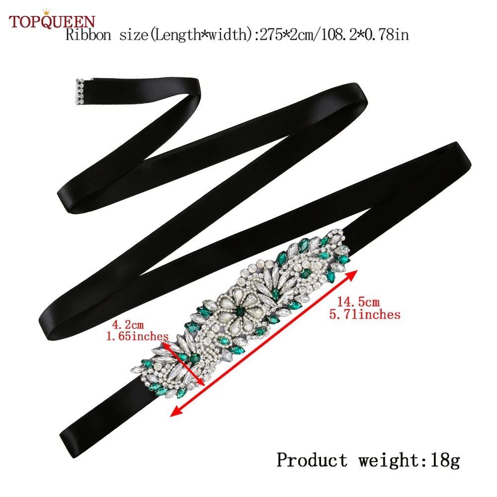 TOPQUEEN S22 Bride Rhinestone Belt Shiny Wedding Accessories Party Woman Emerald Belts Jewelry Wedding Dress Decoration Sash